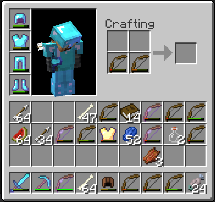 There seems to be a new bug with the crafting repair in 14w05b. The bows can now repair but the 3rd bow is now duplicating. When I put 2 broken bows in my 2x2 crafting grid the product square showed a repaired bow. I took that bow, got a bow to put in my inventory and the 2 original broken bows were still in my 2x2 grid, and the product bow was still in the product box. I was able to take the repaired bow as many times as I wanted. Definite item duplication bug