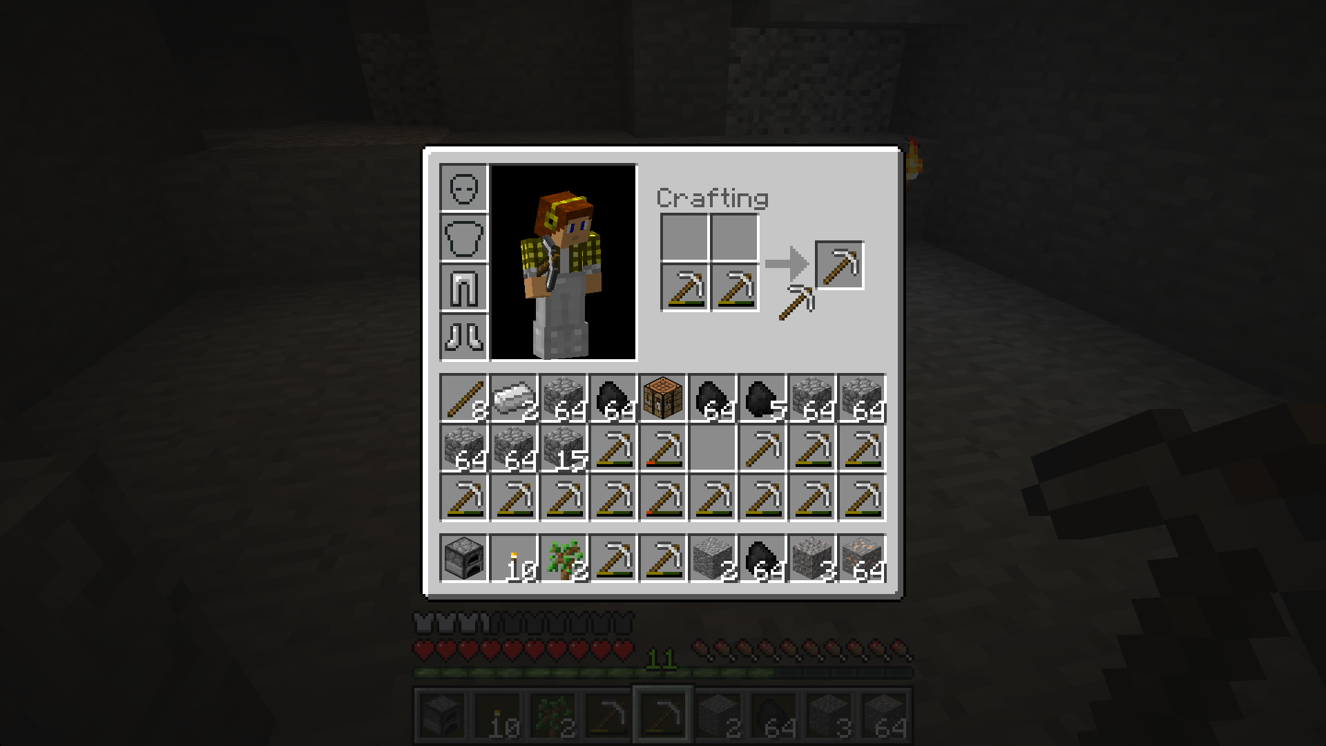 All damaged pickaxes was created in first try to repair 2 itemsClick+shift fill inventoryhttp://youtu.be/SnBSQVGYYnI