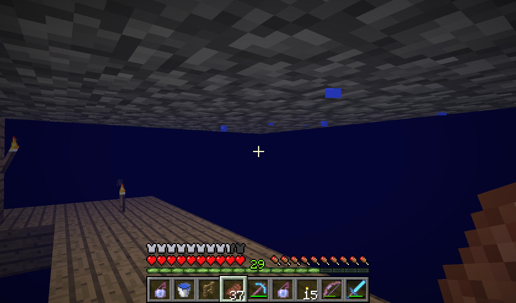 I was below my mob farm and I have 1 block below water source. I walked to where the water was dripping and the graphics was like being underwater. When I walked out everything returned back to normal. I placed my under water helmet on and I could look around with the effects I would have if I was at the bottom of the ocean/river. Also when I walked under the water the sky turned dark blue to a purplish color