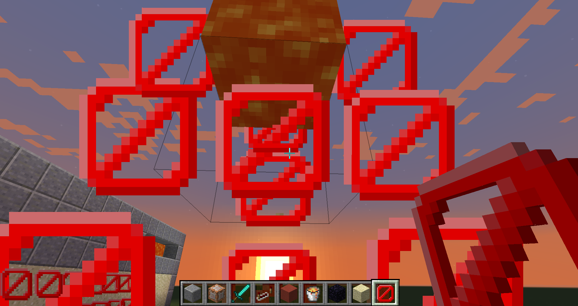 And you place a barrier block 2 blocks above the block where you are standing of. And you place a lava block on it.