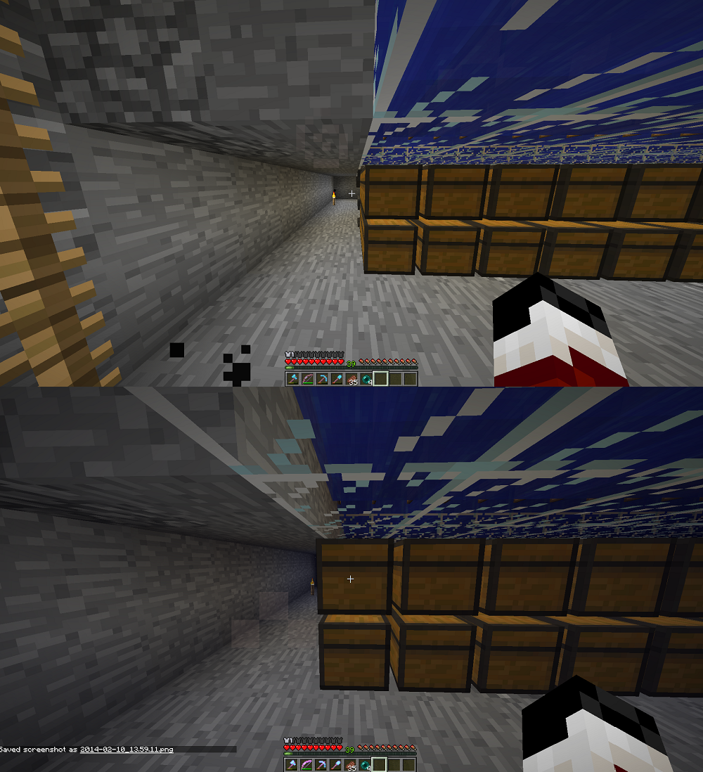 When standing below glass with water on top the lighting changes are too harsh between that and without blocks and water on top. Picture explains the issue better.