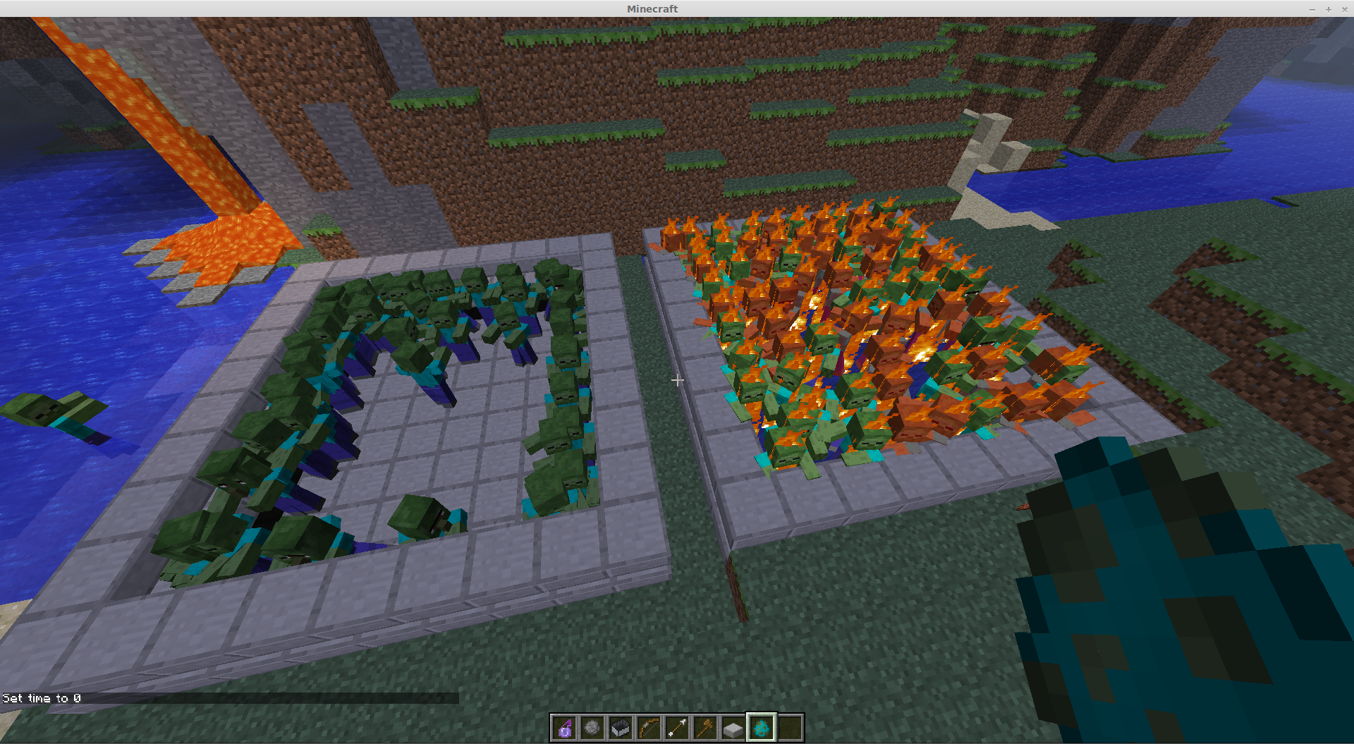 If a Zombie or a Skeleton is spawned on a bottom half slab using a monster egg in daylight, it does not begin to burn until it walks off of the slab. I have checked this in every difficulty (apart from peaceful) and with every slab with both mobs.