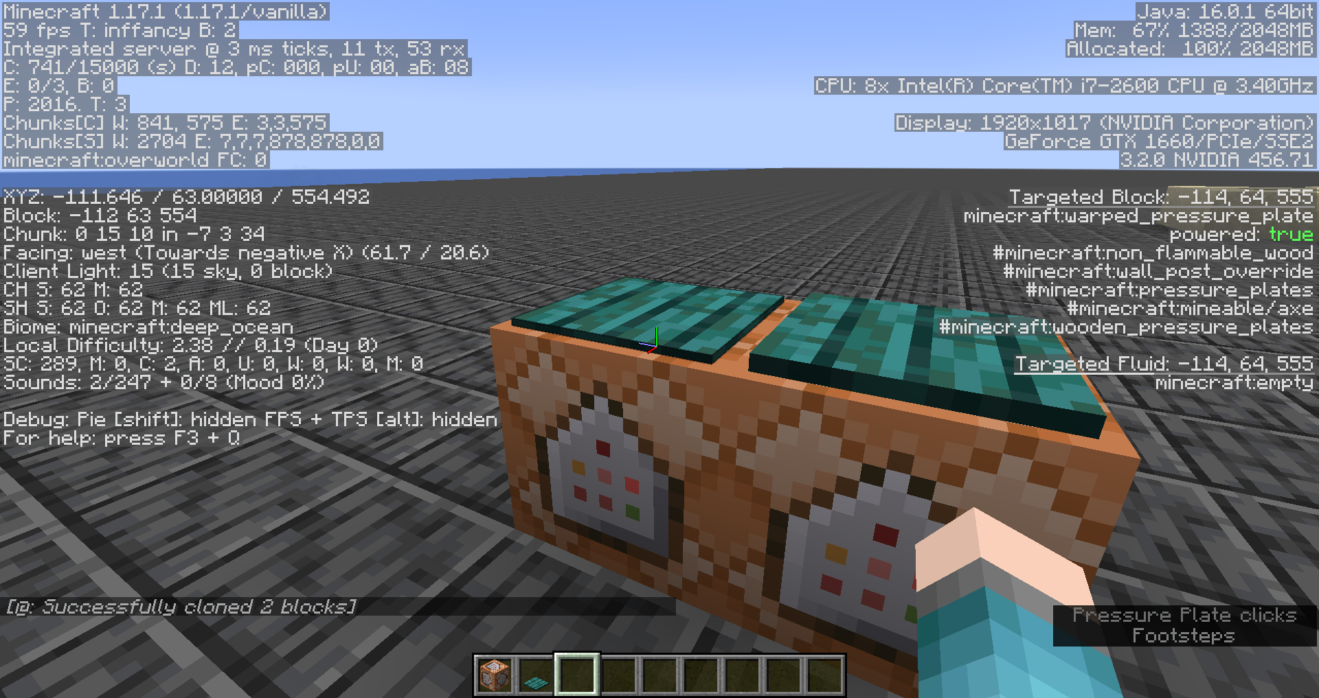 Cloning pressure plates or buttons whilst they're activated keeps them pressed forever.