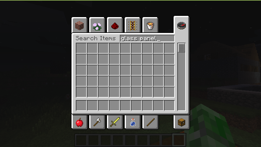 The block "glass panel" appear as "glass pane" on inventory