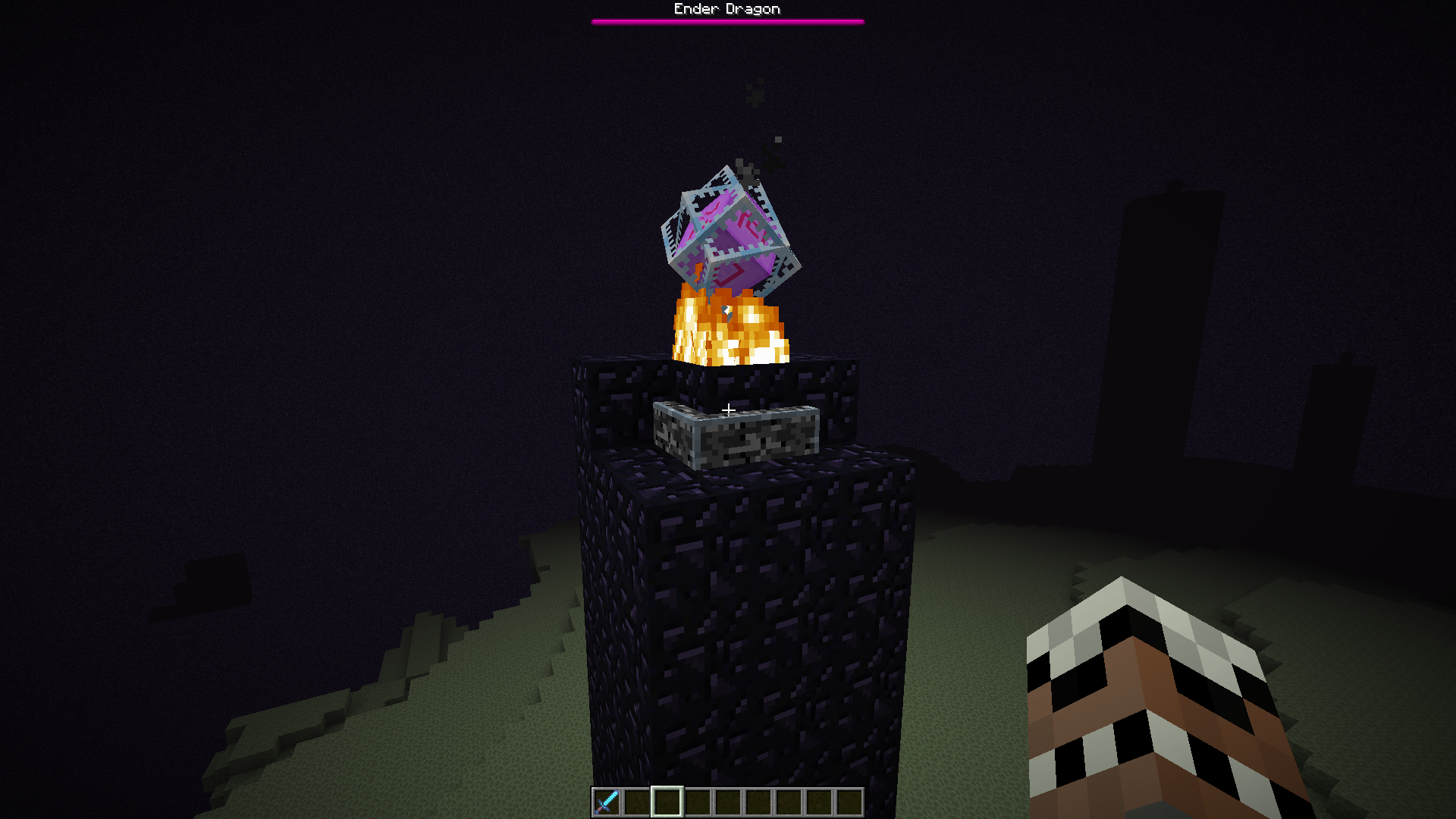 When i go to end thing that heal ender dragon are stuck in obsidian