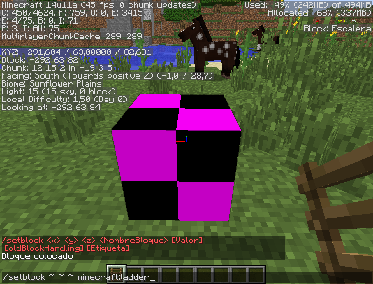 If you try to place a ladder using /setblock command, a solid block with broken texture appears