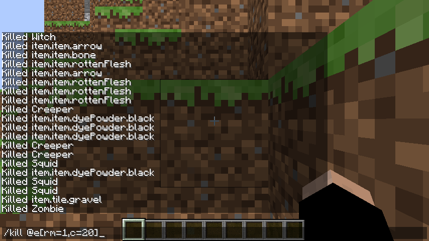 20 things excluding yourself to be killed; the usual suspects: squid, bats, cows, pigs, sheep – and if you keep running the command: their drops.