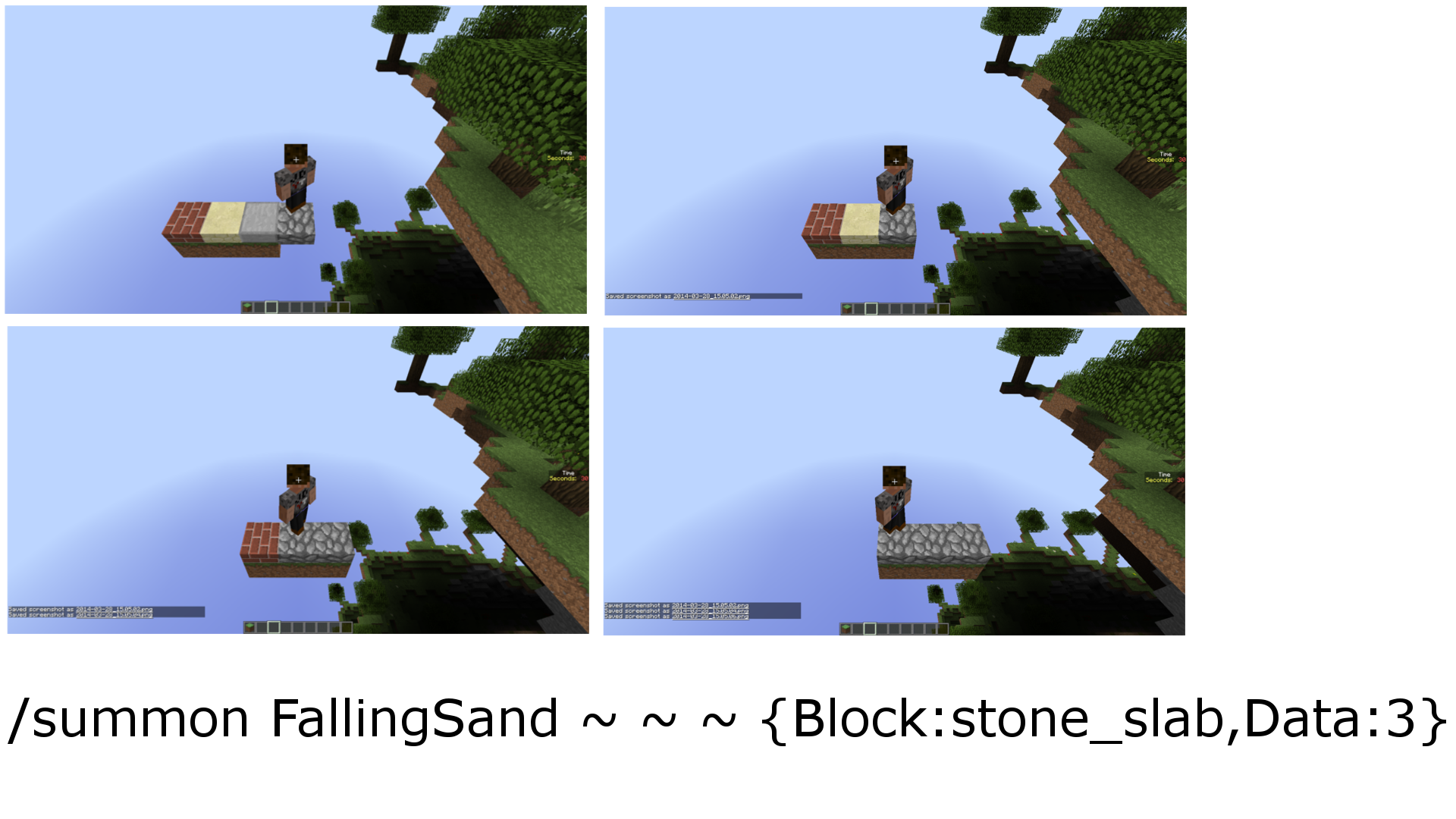 This will spawn a falling sand entity with the block id of a stone slab rapidly to you.