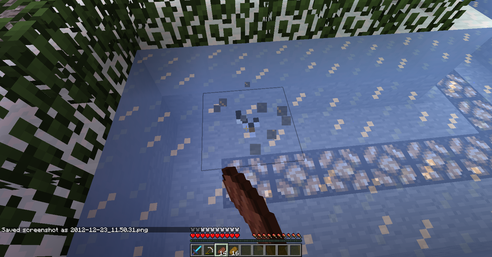 That you eat a food item while destroying a block when the hunger bar drains ?