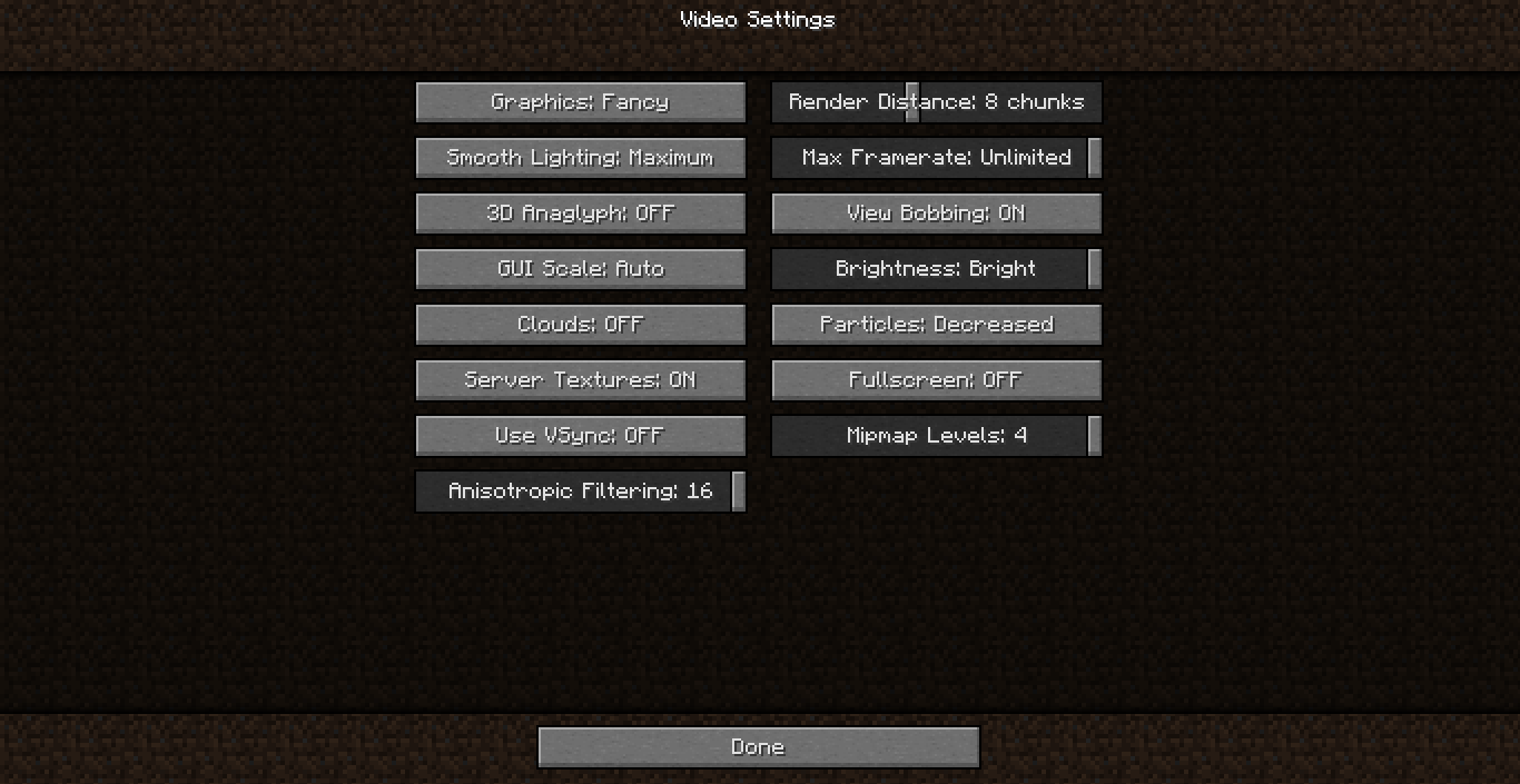 I play with smooth lighting at maximum, and noticed that it does not always appear to work. The attached screenshots include the environment, as well as my Video Settings, of which was taken 6 seconds later.