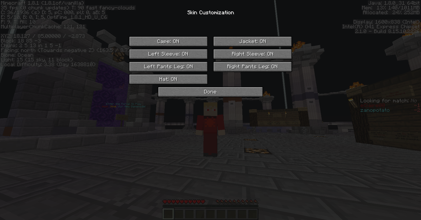 Also, I've just put my skin back to my 1.7 one, and my hats are back!