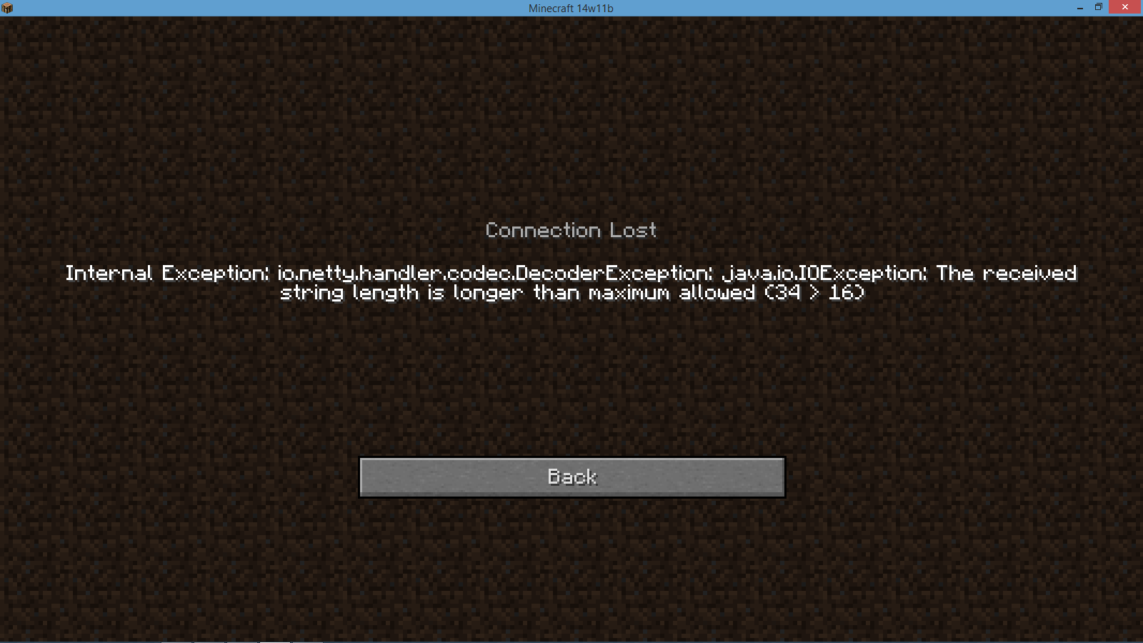 I was playing LAN SMP with my friend. I had to quit the world to do something, however my friends client did not immediately exit the game. His character proceeded to fall through the world until a timeout exception at bedrock. I then restarted the LAN world. Upon trying to join the game, my friend got disconnected due to a Java exception: Received string length of 26 is longer than max string length of 15. I also noticed that I had been removed from my scoreboard team. I then quit the world to write this, but then suffered an "Updating screen events: java.util.NoSuchElementException" crash.