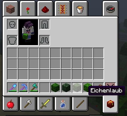 When I take a leave from the crative-menu to my inventory, the name changes after some seconds to "Eichenlaub" even its birch,spruce or jungle.