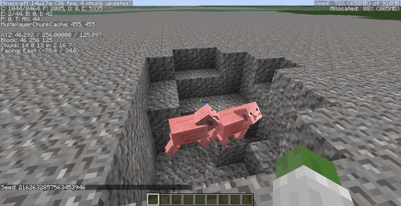 Was testing the custom terrain, set all sliders on page 3 as far left as possible. Heard pigs, didn't see any. Dug away the gravel where the sound was and revealed spawned pigs. Once they climbed up to 256 I could again hear them, but not see them.
