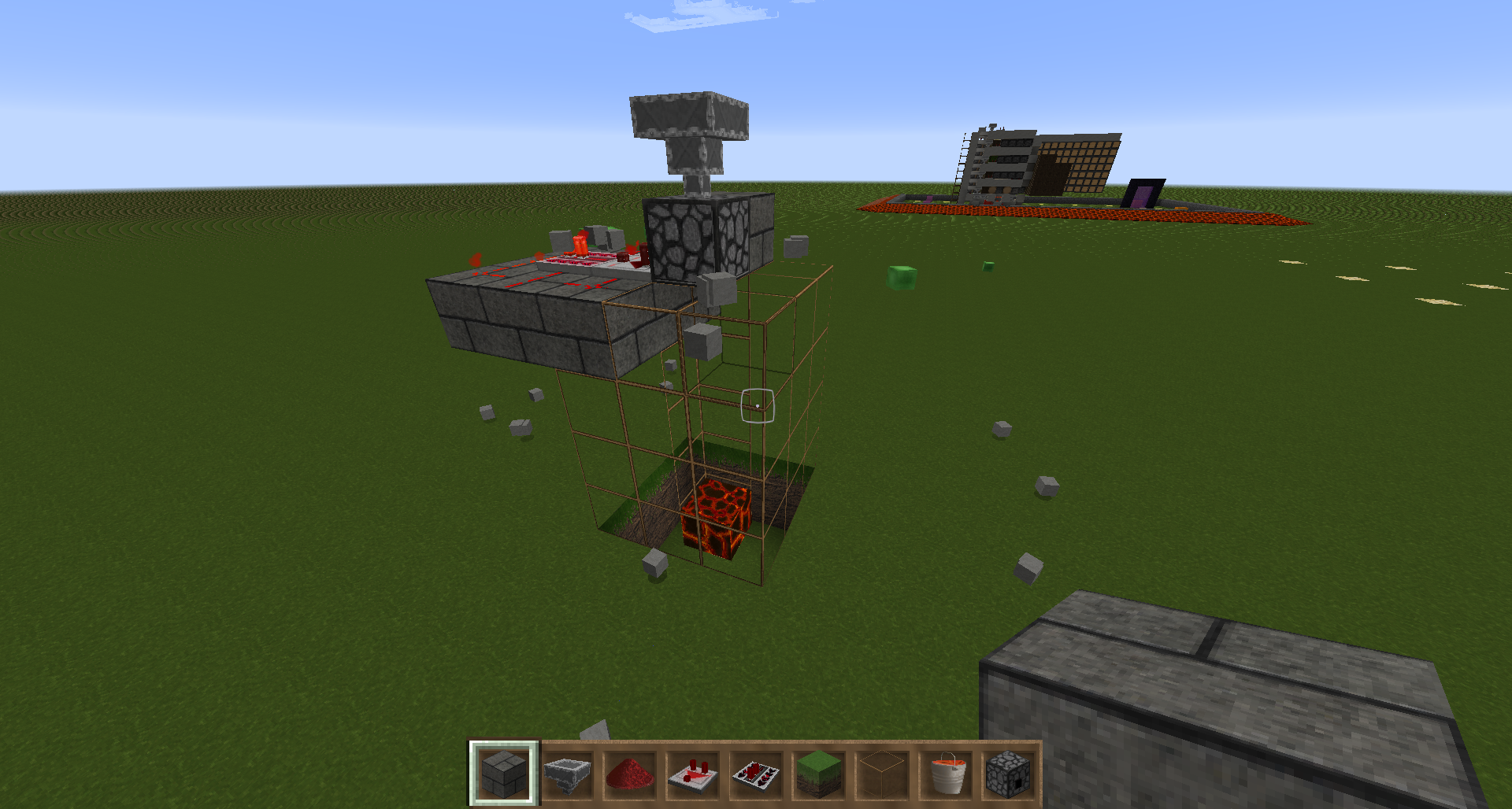 2. 1 block down from the dropper place a ring of blocks so that the dropper is in the center and is sitting on top of the open space in the center of the ring (3x3)