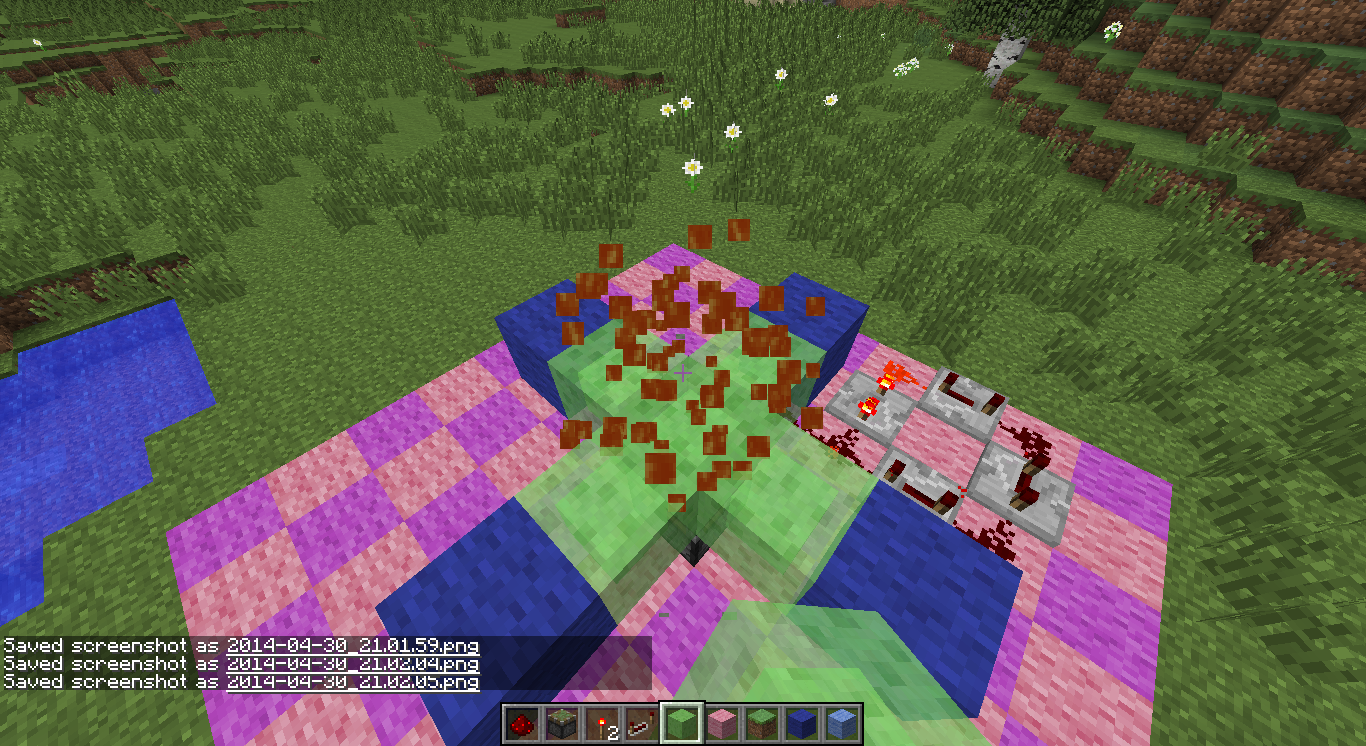 When breaking a slime block while it is being moved by a piston there is the possibility of the particles (visually) being lava particles.