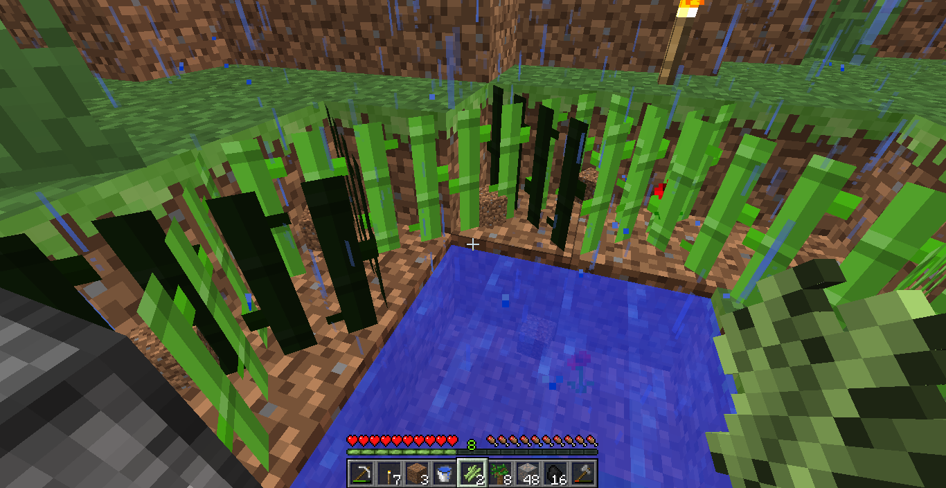 When sugar cane is looked at a certain way, the texture turns black for half of it. I'm playing In a custom world with dungeon count on 10 and diamond spawn try on 2.