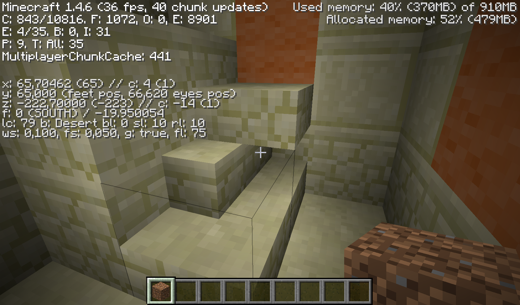 Also there is this very uncommon bug I found on this world. The last screen shot shows both the seed and the coordinates of this bug, it occurs when a desert temple spawn to close to a desert village. as you can see in the first two screen shot the house is rendered first and then the temple is rendered inside.