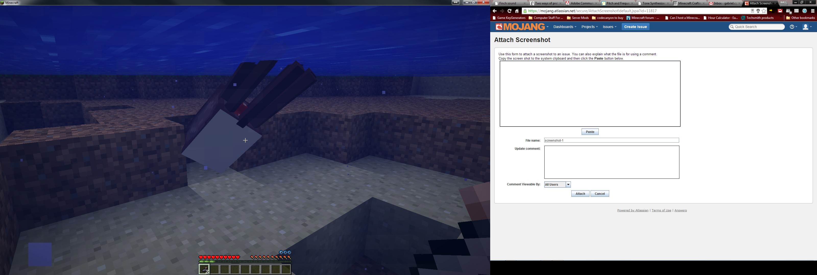 When I attack squids, zombies, and pigs one side of the block on their head turns white. I'm not quite sure if this happens with other mobs, it might happen as well. It happens when I am using a stone sword or my hands, may happen with other items as well.