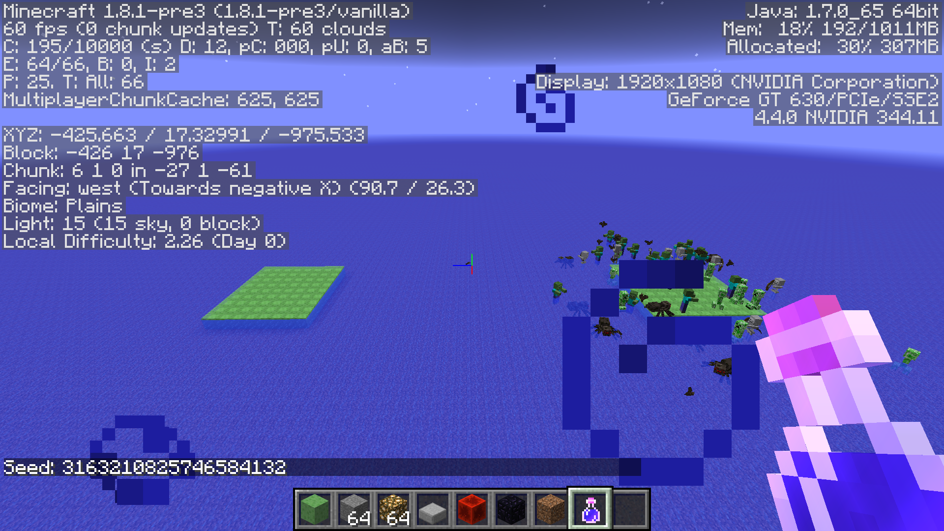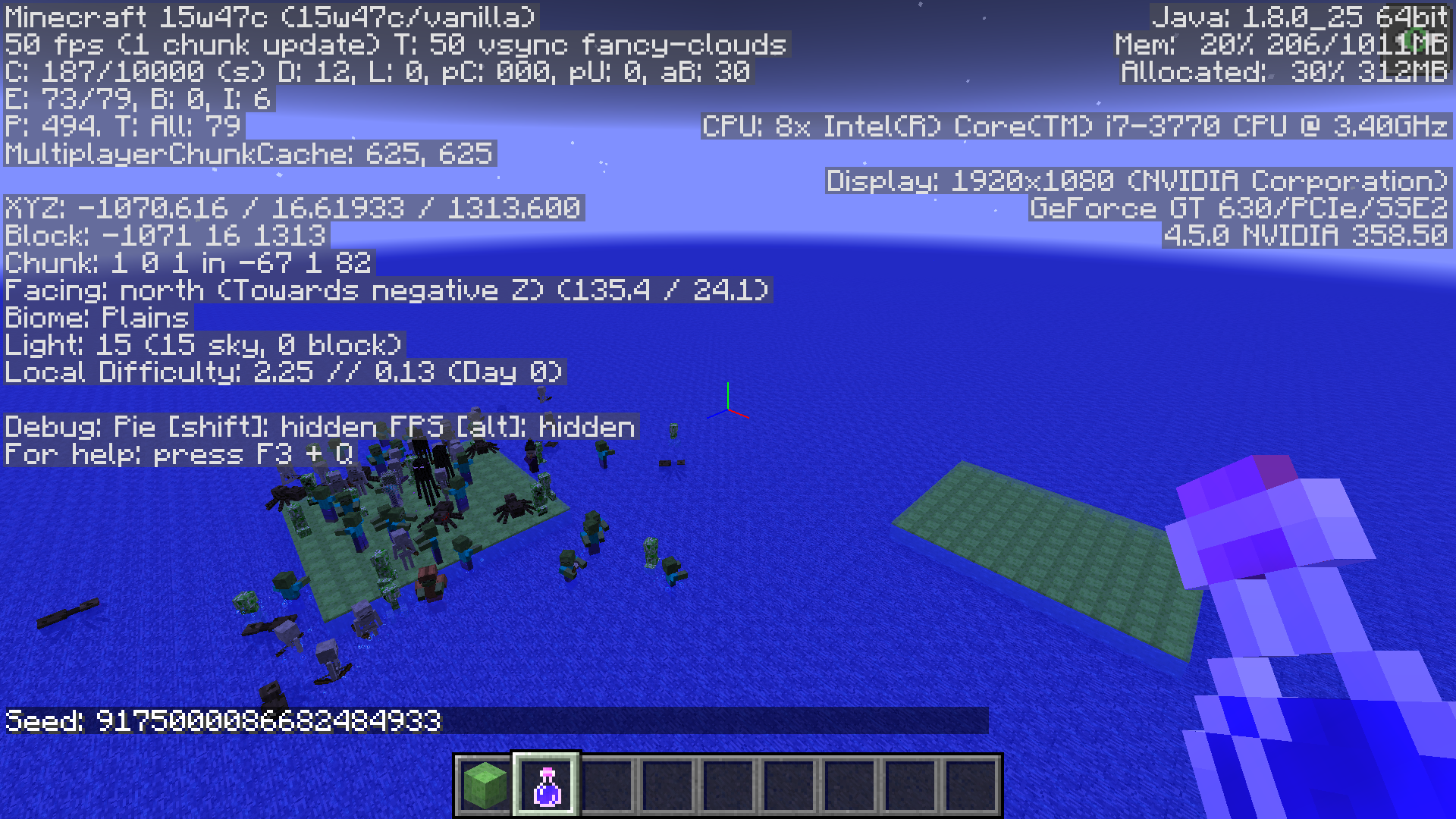 "Maybe the hostile mob spawning area is identical with the slime spawning area (slime chunks)"