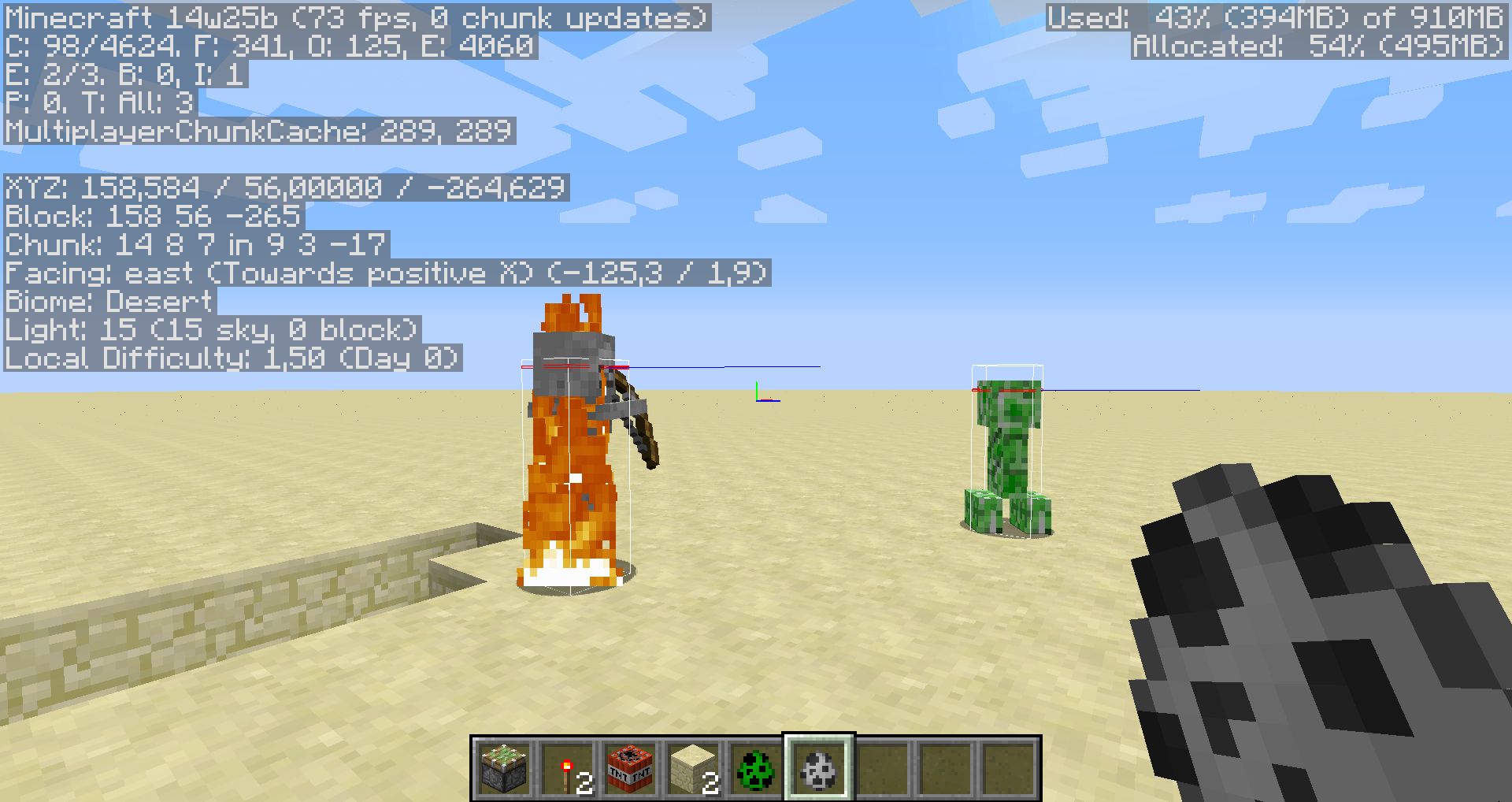 Mobs appear to be frozen or have the wrong hit box if you go through the nether and come back