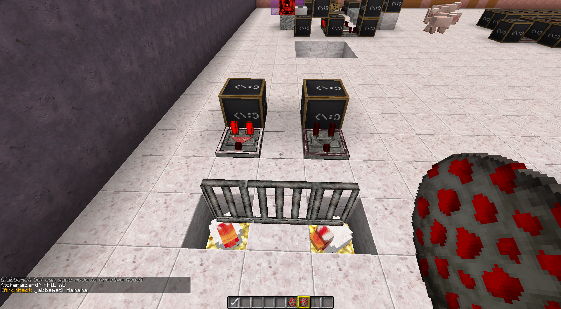 I grabbed 2 chicken spawn eggs and named 1. bosschicken & 2. boss chicken
