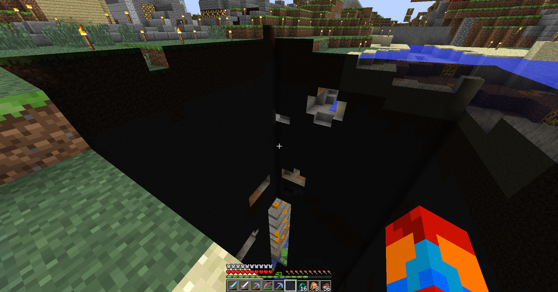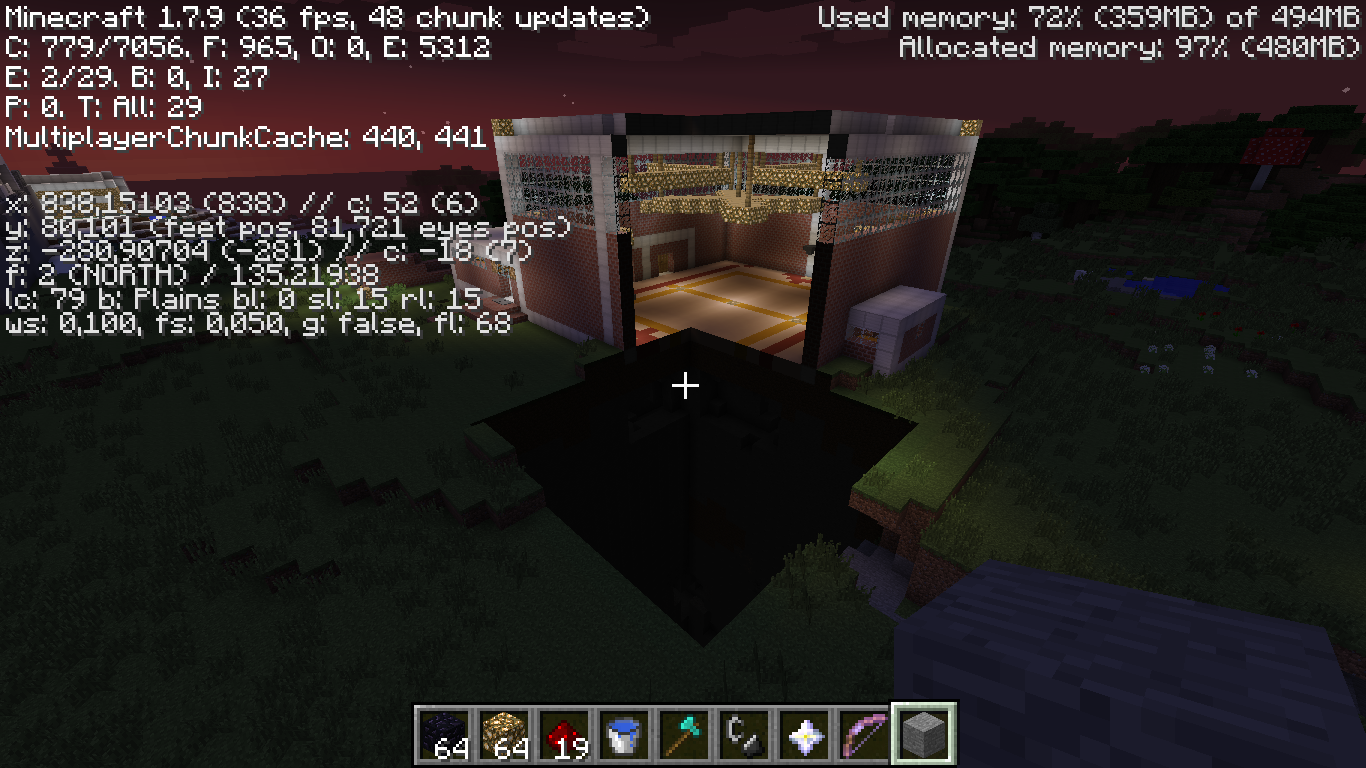 In my world the chunk including coordinates 824 77 -295 is not loaded. It is possible to fly into it. When jumping in it without flying, I'm sinking down, like in cobweb. Coming on the normal ground level I stop and it starts lagging. Over the normal ground level I'm able to shoot with my bow, under it not. When shooting on the hole from above, the arrows seem stucking in the air while actually stopping on the level of the ground, that was there. In the hole there are about 150 bats, that are also slowly sinking down. On the top, just under the earth level, some bats are hanging, but it is impossible to make them fly.