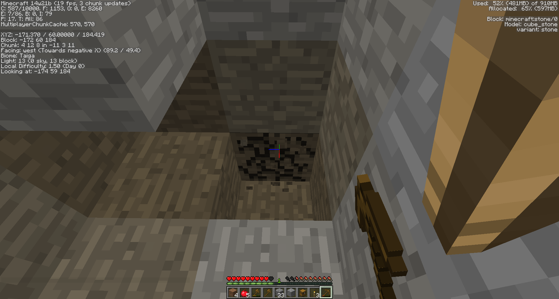 When I break a stone block from the west the breaking texture has some shadowing on it. It doesn't happen from other sides, although it does happen with all pickaxes. You must be breaking it from the side face, although the whole block's texture is affected.