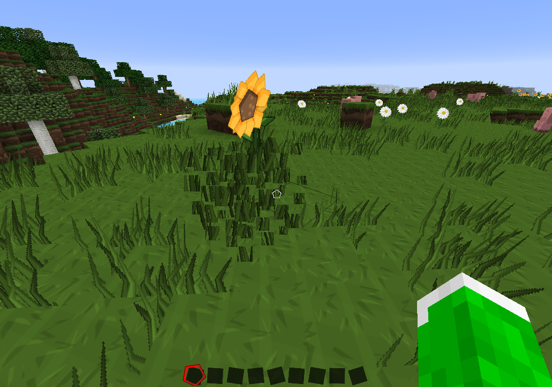 Just a small graphical glitch concerning any plant that is 2 blocks high that when you break the lower half, a sunflower will pop up for about half a second and disappear.