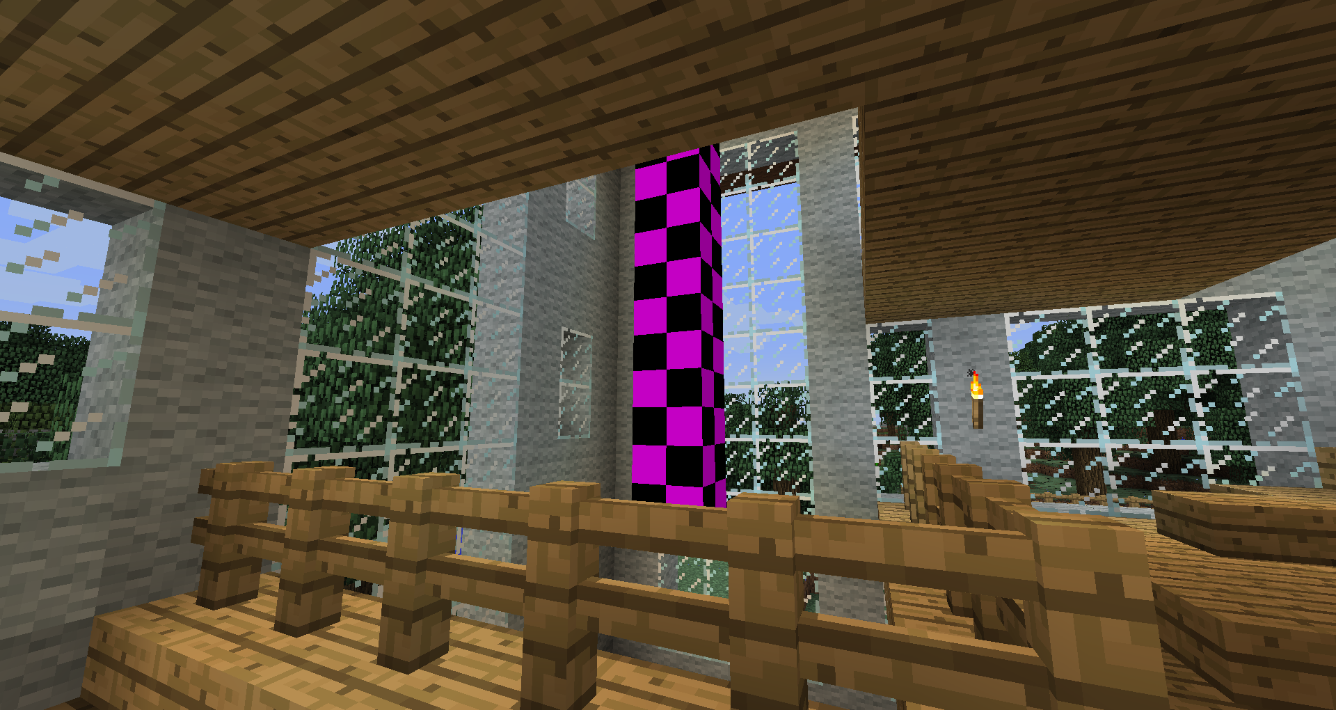 I went on a world and noticed that some of the glowstones were showing up as missing texture blocks (the black and pink blocks). This also happened with some grass and sand.