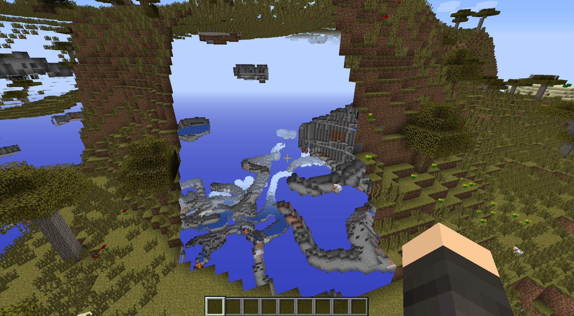 Some chunks dont render in 14w25a. They're just invisible. A Prove the chunks are really there, just unrendered, is you can see mobs in those chunks and they dont fall