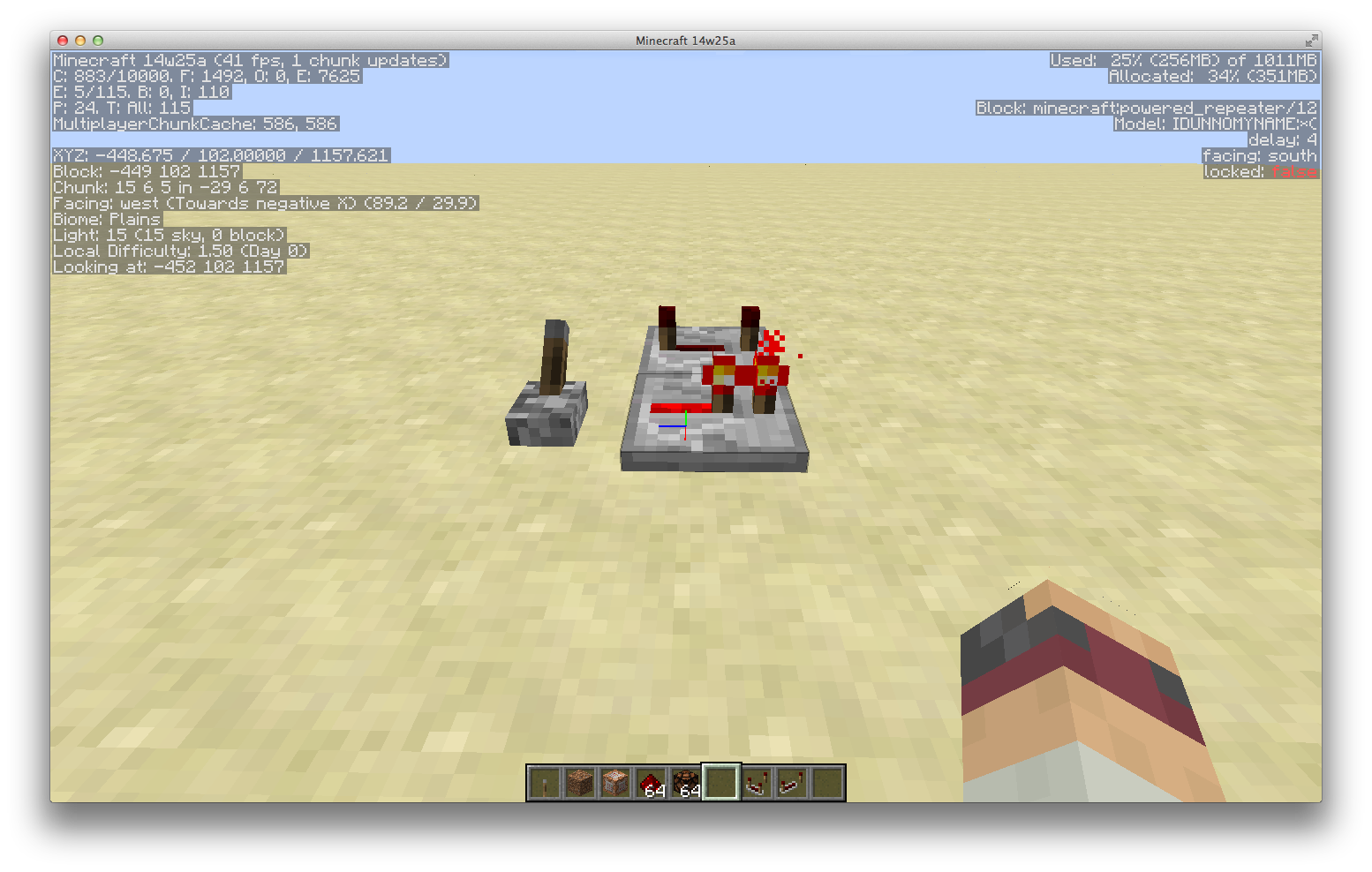 When a repeater is powered it will only show the default model. The NBT data is correct and the function is not altered, but the model does not display correctly.