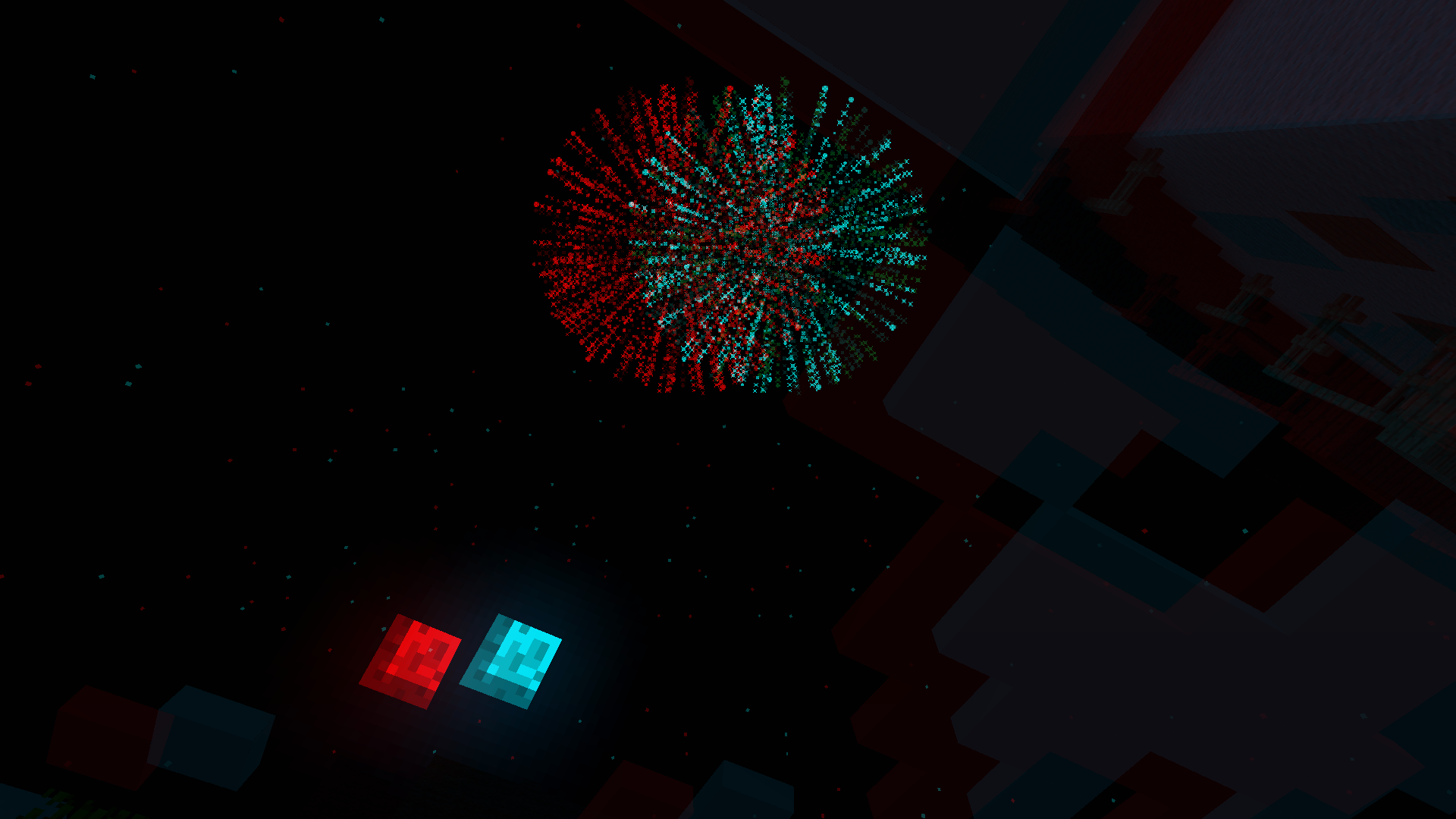 plus. you're saying that everyone has to buy an expensive 3d glass just to make the fireworks look good? if everything looks fine with normal 3d glasses, (because I got those too) including mobs and other gameplay element. don't you think it's an ingame error that only the fireworks don't look good? btw Im not talking about the colors here, im talking about the fact that if I fire 1 firework I clearly see 2 fireworks with my 3d goggles