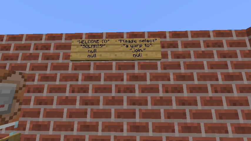 I tried updating MC to 14w25b, when my game crashed (see MC-57890), but that's not the point of this post. After that, I returned to 14w21b, and I checked up on some of my signs. Well...you can see for yourself what happened to them. The quotation marks and "null"s shouldn't be there. (Interesting that in the last screen shot the "water" sign didnt get messed up.)