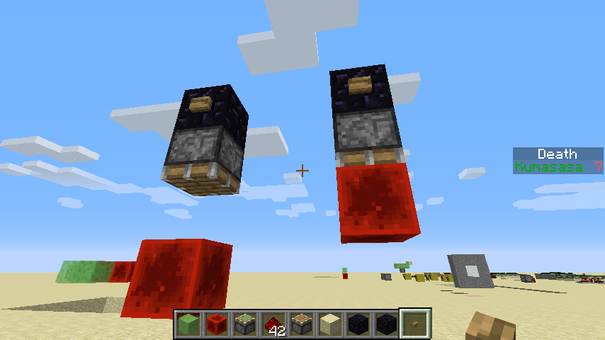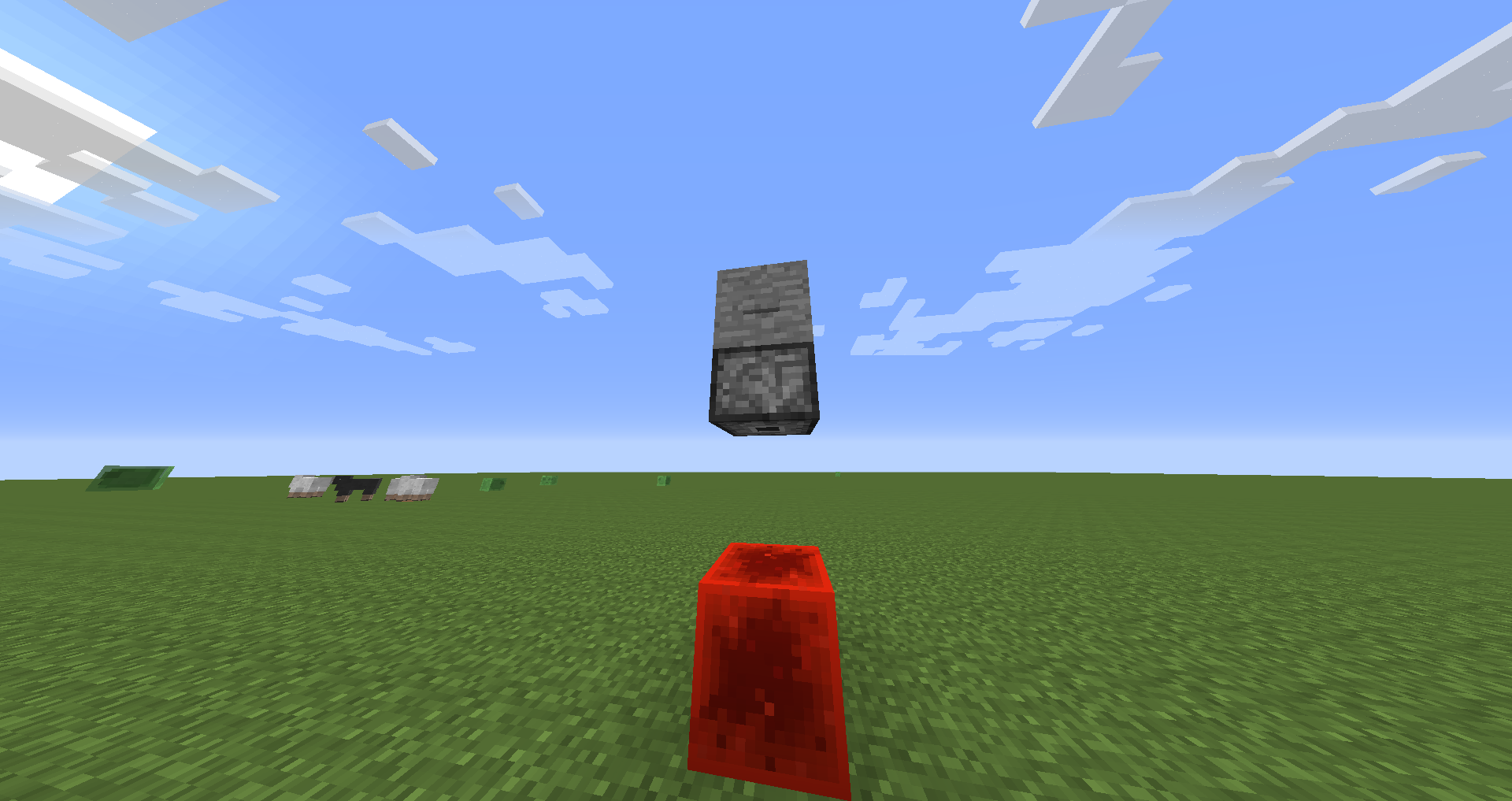 when you put a box with a button with a piston that "looks" down with a block of redstone, piston bug.