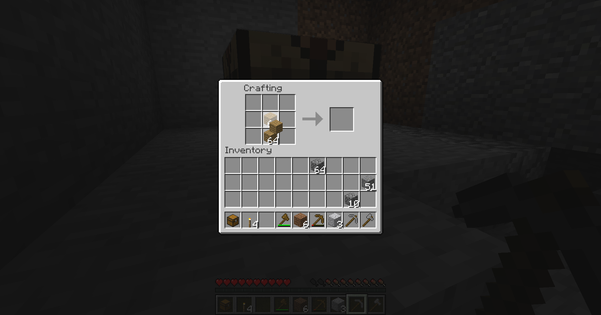 2. Then Middle click the crafting and try to craft something like sticks with the wood