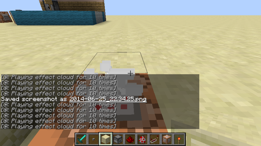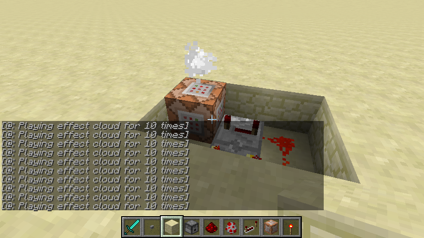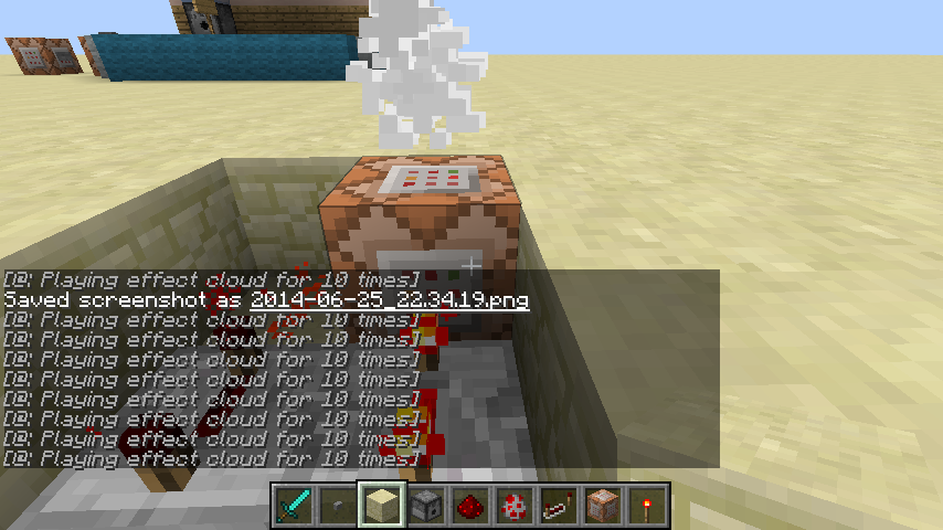 /setblock ~1 ~ ~1 minecraft:repeating_command_block{Command:"particle minecraft:cloud ~2 ~1 ~ 0 0 0 0 10",auto:1b}/setblock ~1 ~ ~1 minecraft:repeating_command_block{Command:"particle minecraft:cloud ~2 ~1 ~ 0 0 0 0 10",auto:1b}/setblock ~1 ~ ~1 minecraft:repeating_command_block{Command:"particle minecraft:sneeze ~2 ~1 ~ 0 0 0 0 10",auto:1b}/setblock ~1 ~ ~1 minecraft:repeating_command_block{Command:"particle minecraft:sneeze ~2 ~1 ~ 0 0 0 0 10",auto:1b}Move close towards the particles