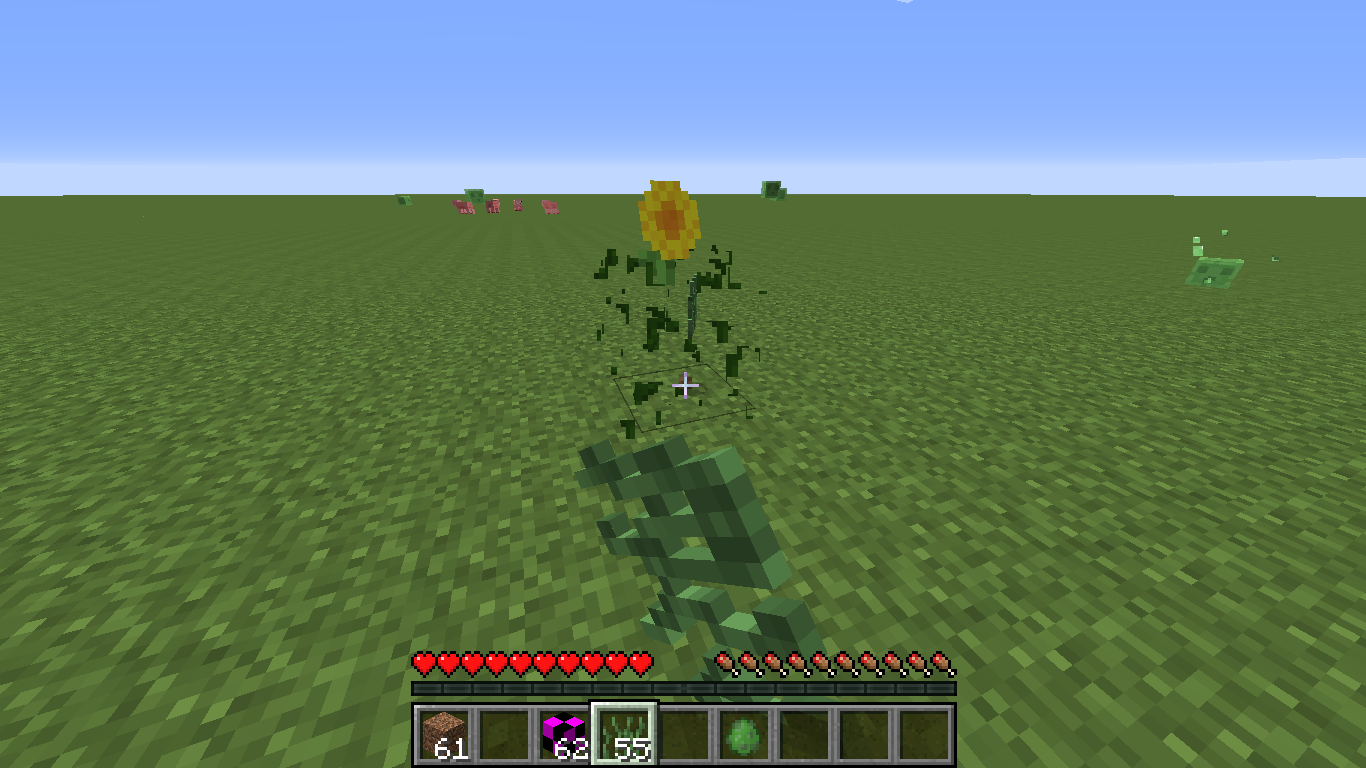 When I use sheers on double tallgrass it instead gives me two ferns. When bottom half of large fern and double tallgrass is broken you can see the top half of a sunflower for a brief second. When bottom half of double tallgrass is broken it drops itself. Seeds drop from it as the "Missing Texture" block.