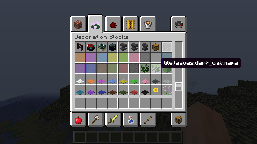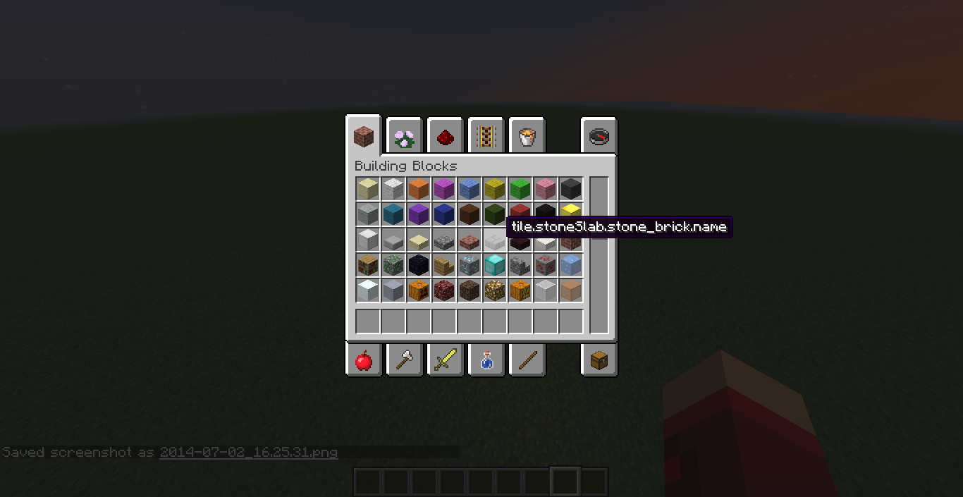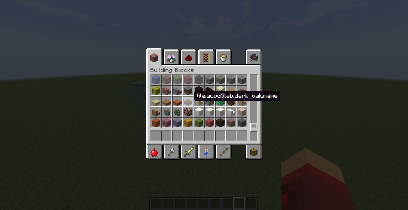 I was fooling around the inventory and saw that the many of the slabs (dark oak slab, cobblestone slab, stone brick slab, and nether brick slab) have the default name.