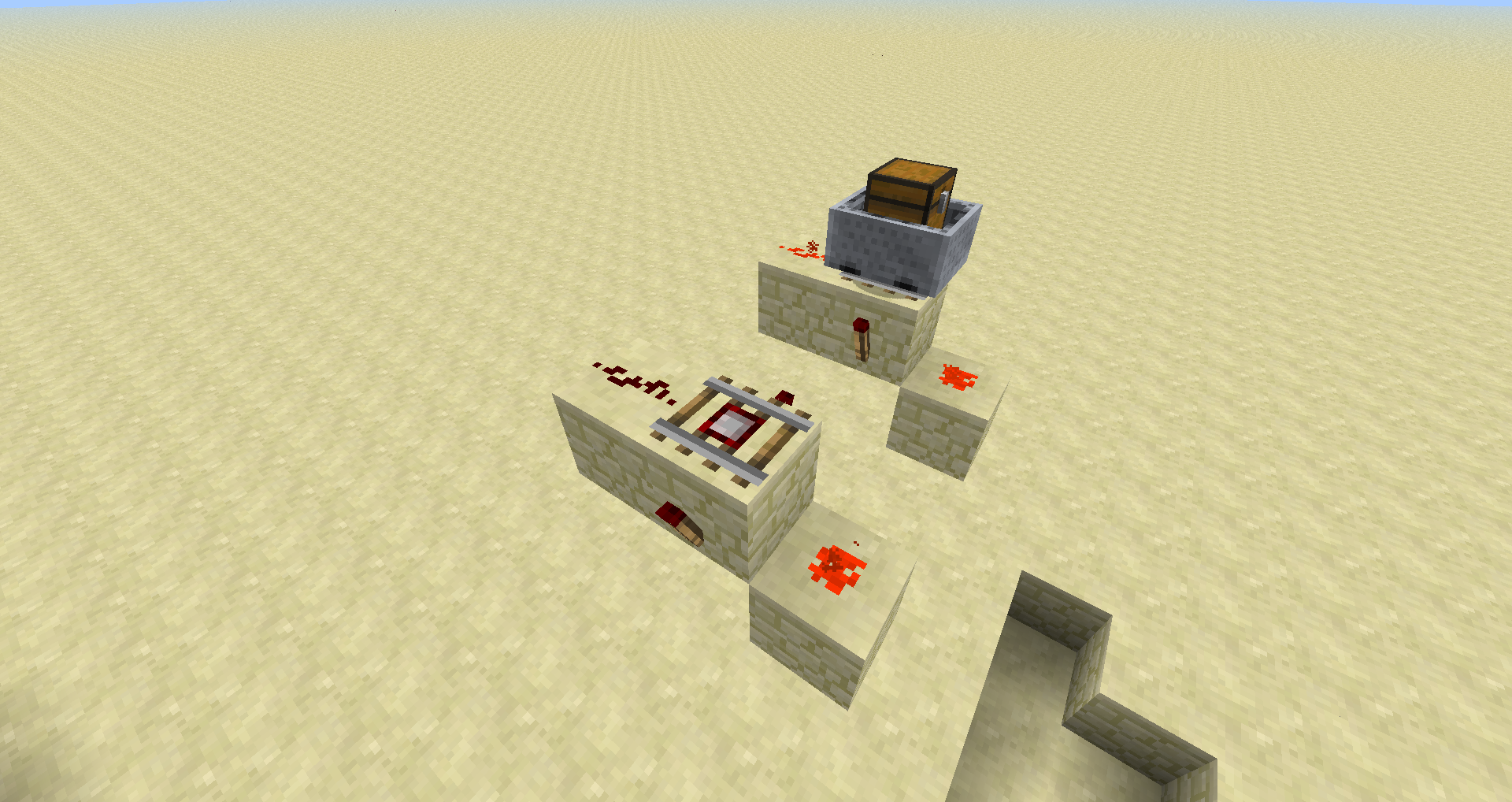 How can you see in this image the block which is under a rail detector behaves as a redstone block.