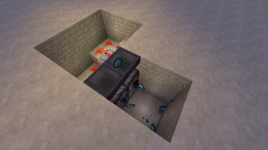 As you can see the diamond starts trying to enter both hoppers, and starts duplicating.