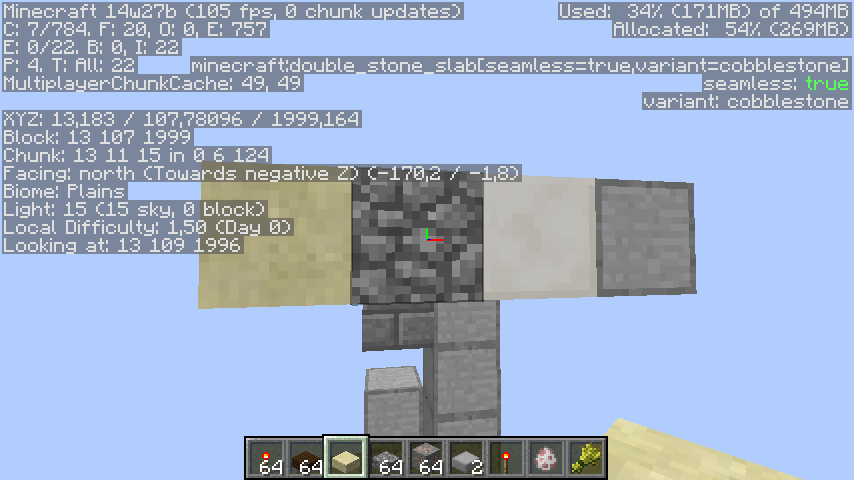 Player placed double stone type slabs are seamless instead of the normal half slab texture due to internally replacing metadata.