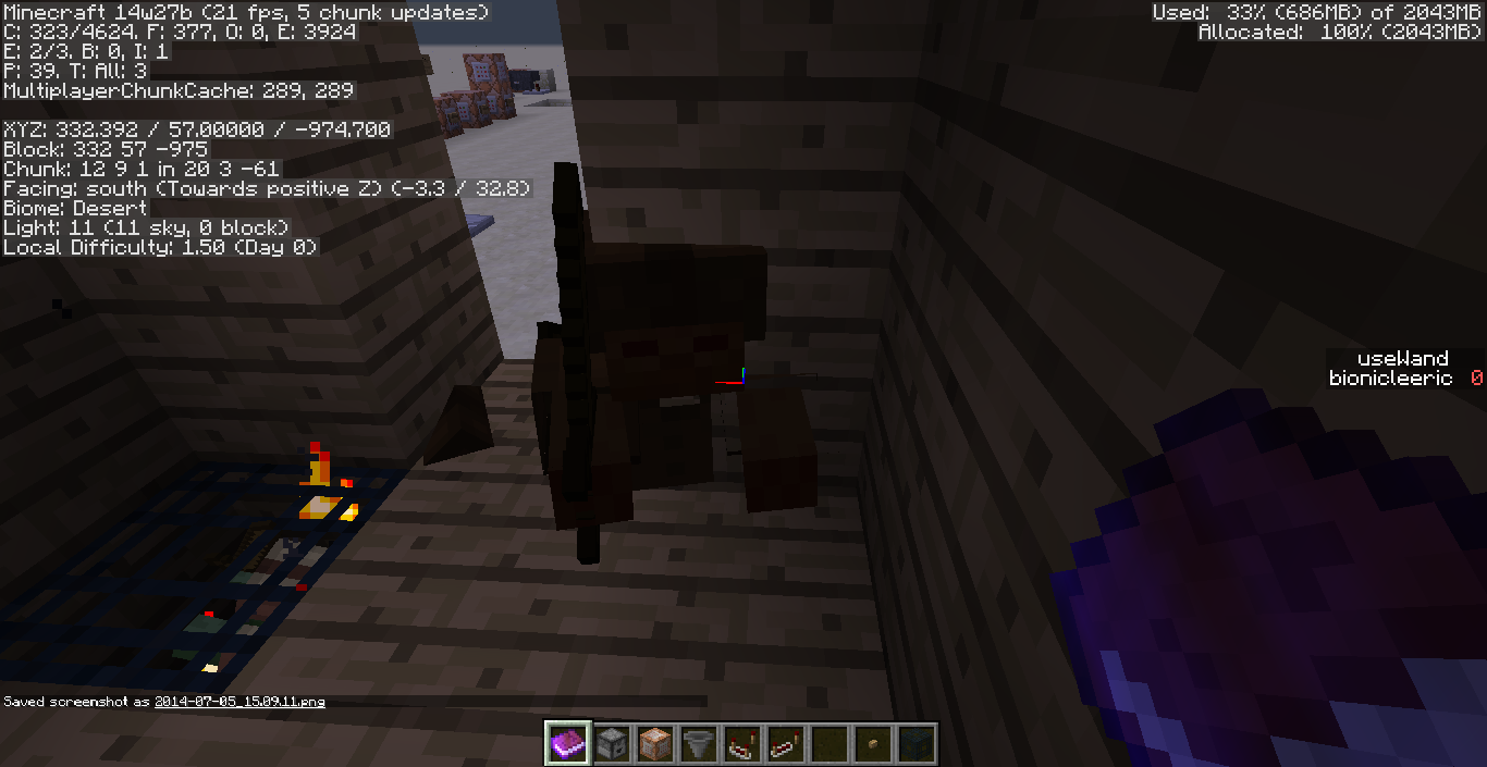 In this snapshot, if you get a spawner and/or find a spawner, it will spawn them inside of the walls, rather than inside or around them. in Any other version, That doesn't happen, Except for 14w26c, as that also has the bug.