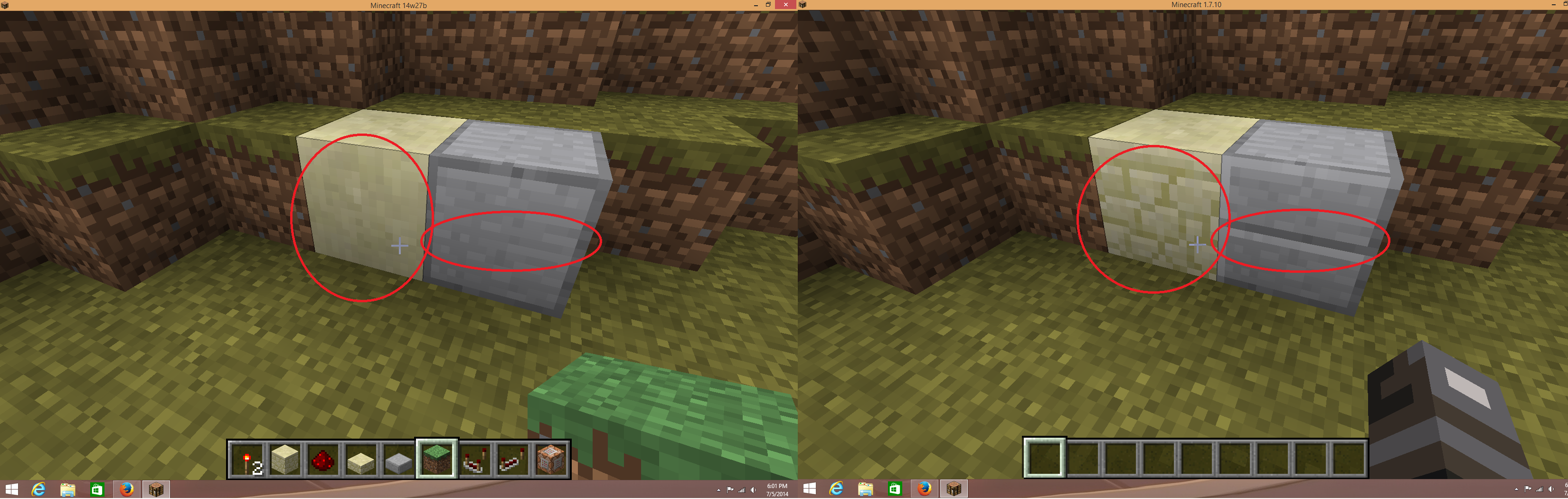 placing two stone slab or two sandstone slabs on top of each other causes the textures to be identical to the ones on the top of the block