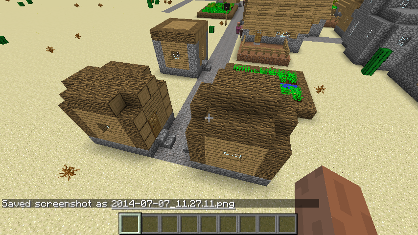 Usually desert villages are made up of sandstone, but the ones generating in desert biome are made out of the same material as normal villages. Also it seems certain blocks are generating with incorrect metadata (slabs, logs) in all villages.
