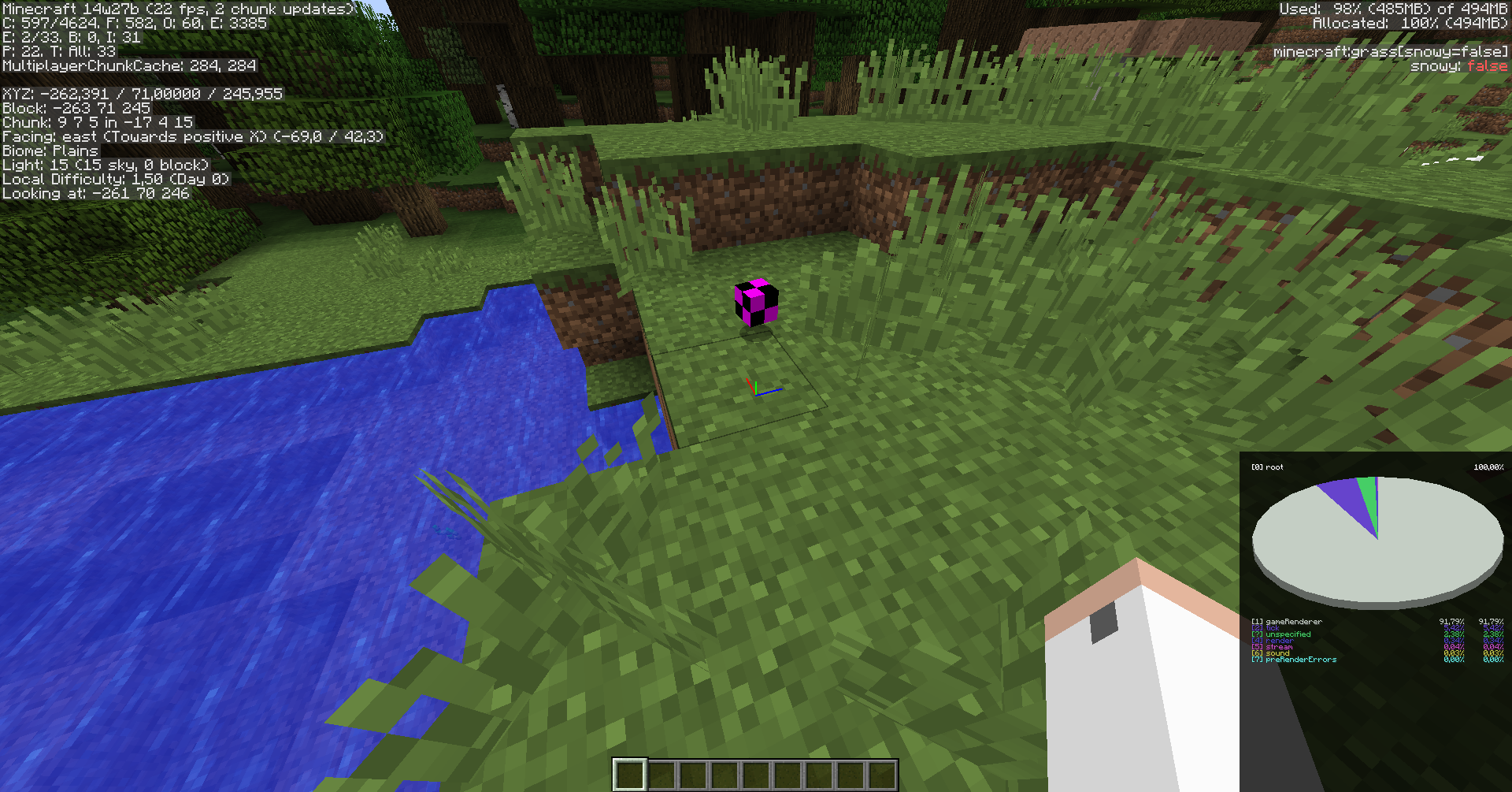 I was flying around in a new world in creative mode. Was looking for a certain type of biome, and had set the gamerules of doMobSpawning and doDaylightCycle to false.