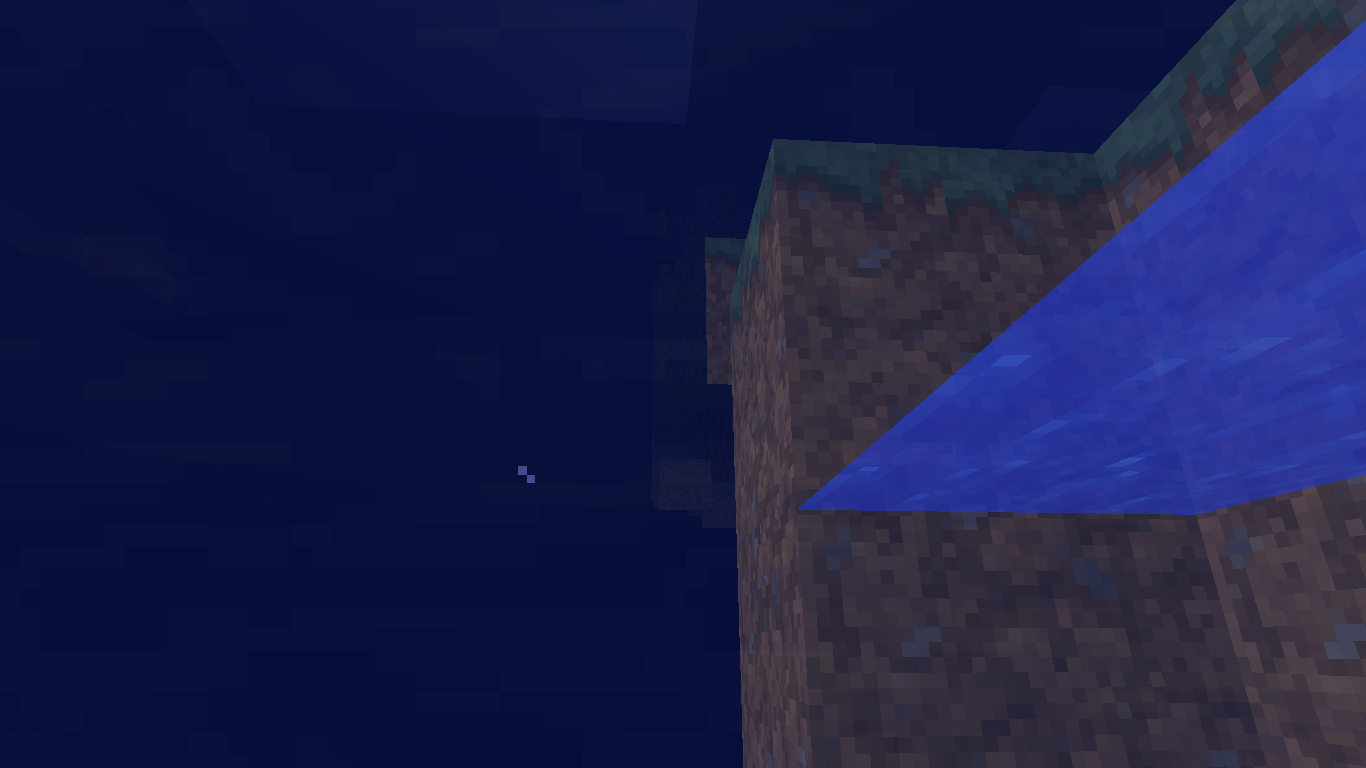 A much larger section missing in the screenshots. I thought it was a chunk loading error at first, but the blocks are still there and fully functional! I was almost burnt to death by lava that I had no idea existed! Underwater drowning also happened. This doesn't seem to be a chunk loading issue due to size as well, since the dimensions are 3D.