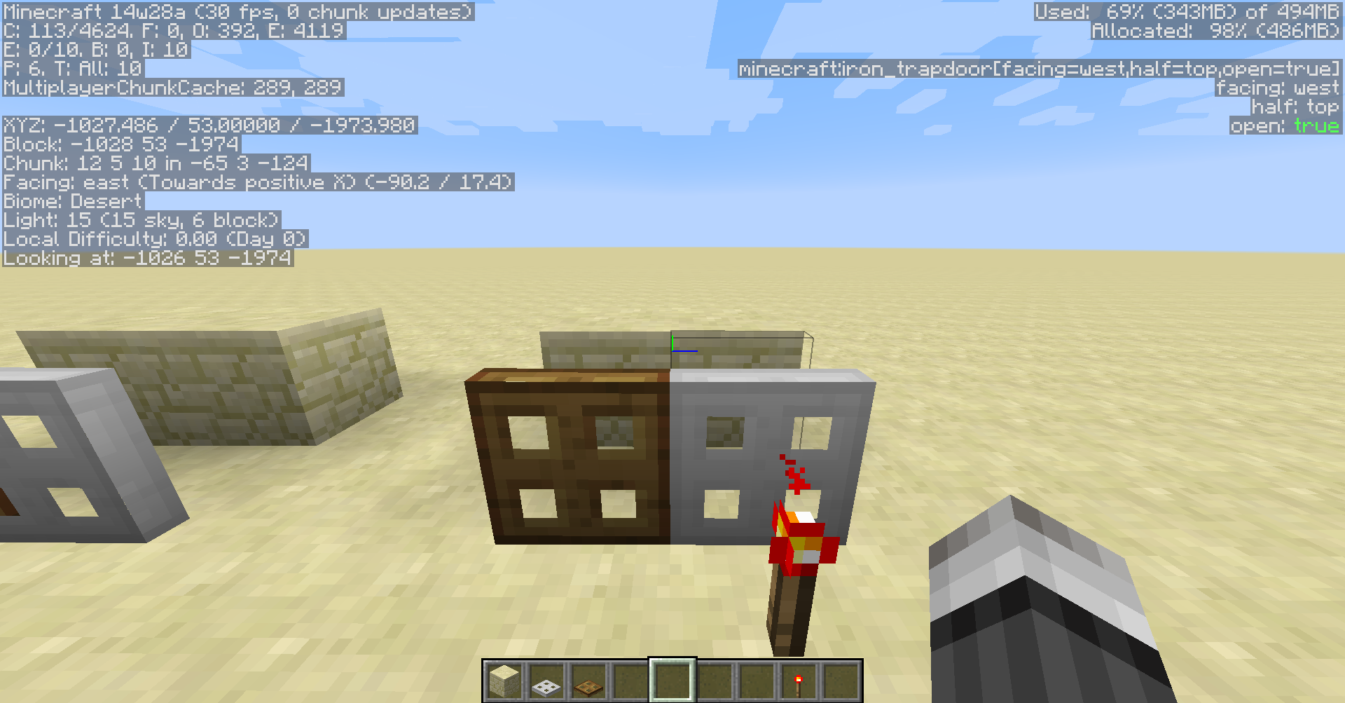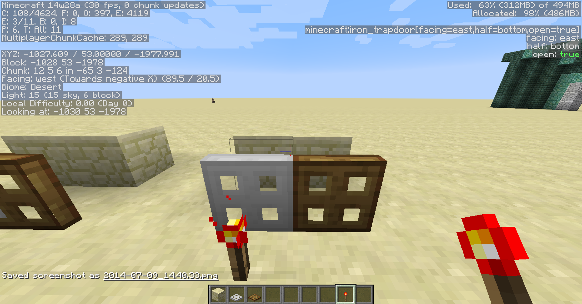 In the screenshots you can see the bug in this order (Or look at the "F3" mode block info):
