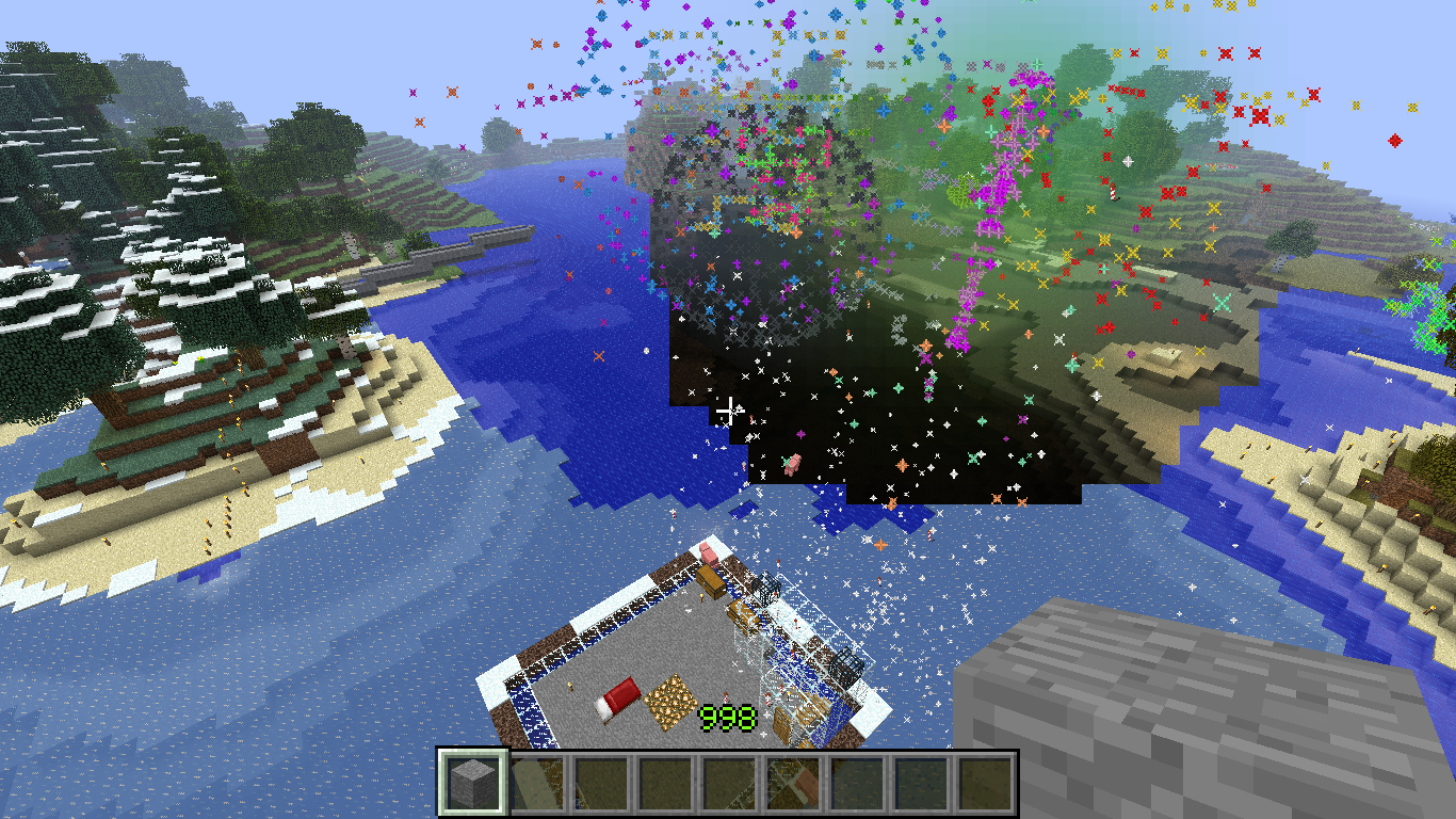 when fireworks explode they have a colored flash (particle?) thing that appears, when this is viewed in front of water it doesn't display the water texture behind the flash also making the flash look wierd as you can see the pixelated outline of it.