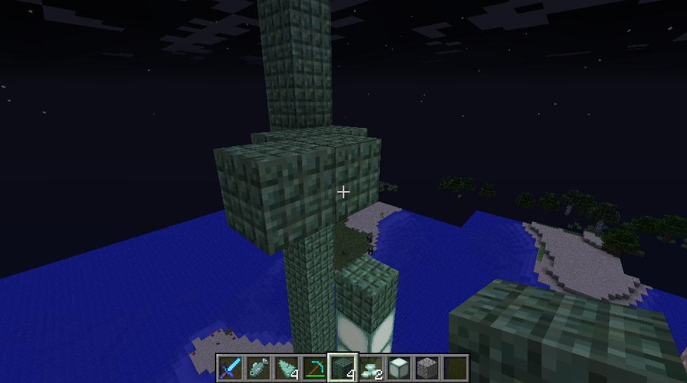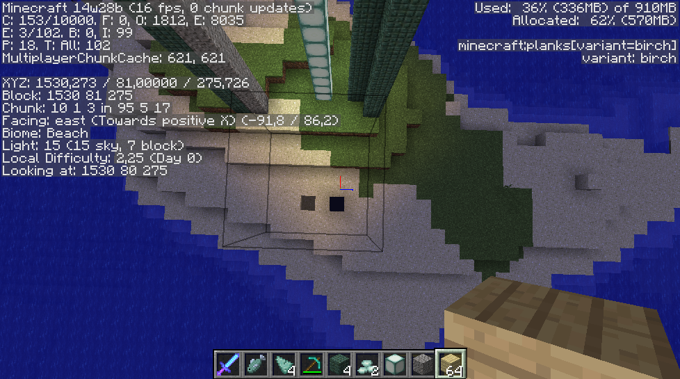 When pillaring up in a straight column, at some point Minecraft starts to render transparent blocks. (attachment: pillar 1) If you log out and log back in, the blocks will be visible - but starting a new pillar or continuing to built on the previous one will render blocks again invisible at some point.